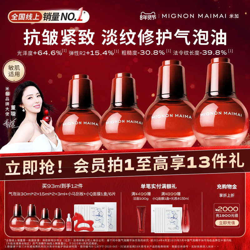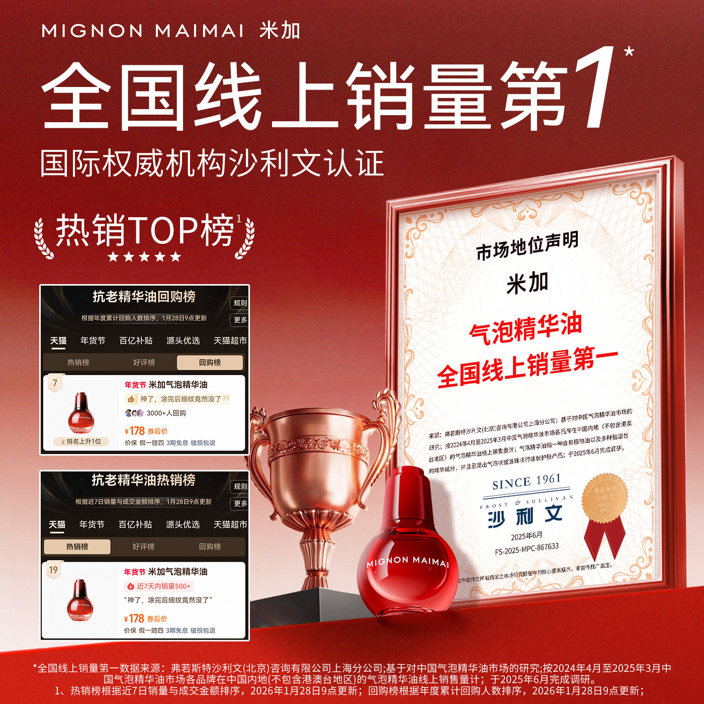 【新年礼遇】米加气泡精华油,集美白、祛斑、淡纹、提亮于一体的高端面部护肤油。采用创新气泡渗透科技,将珍贵植物精萃与活性美白成分微囊包裹,轻按即化,快速渗透肌底,深层滋养不油腻。富含维生素C衍生物、光果甘草根提取物等天然亮肤成分,有效抑制黑色素生成,淡化色斑痘印,改善暗沉不均。同时添加抗老胜肽与角鲨烷,紧致肌肤、抚平细纹,令肌肤细腻柔滑、透亮有光泽。新年焕新肌,一瓶开启水润透亮的养肤之旅,让肌肤由内而外焕发健康光采,是节日馈赠与自我犒赏的理想之选。
