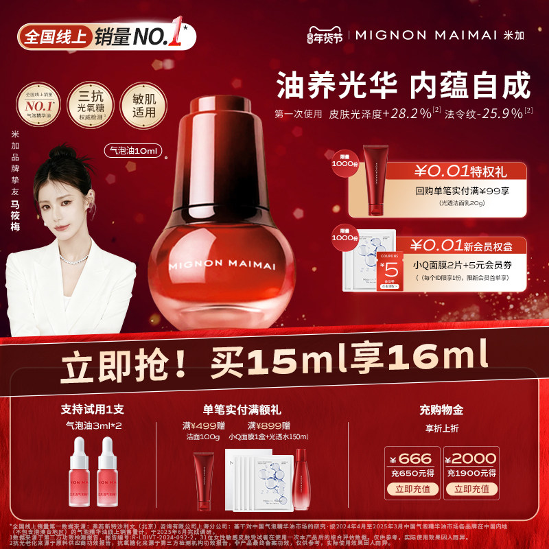 天猫【马筱梅同款】米加光透气泡精华油保湿抗皱修护滋养护肤以油养肤