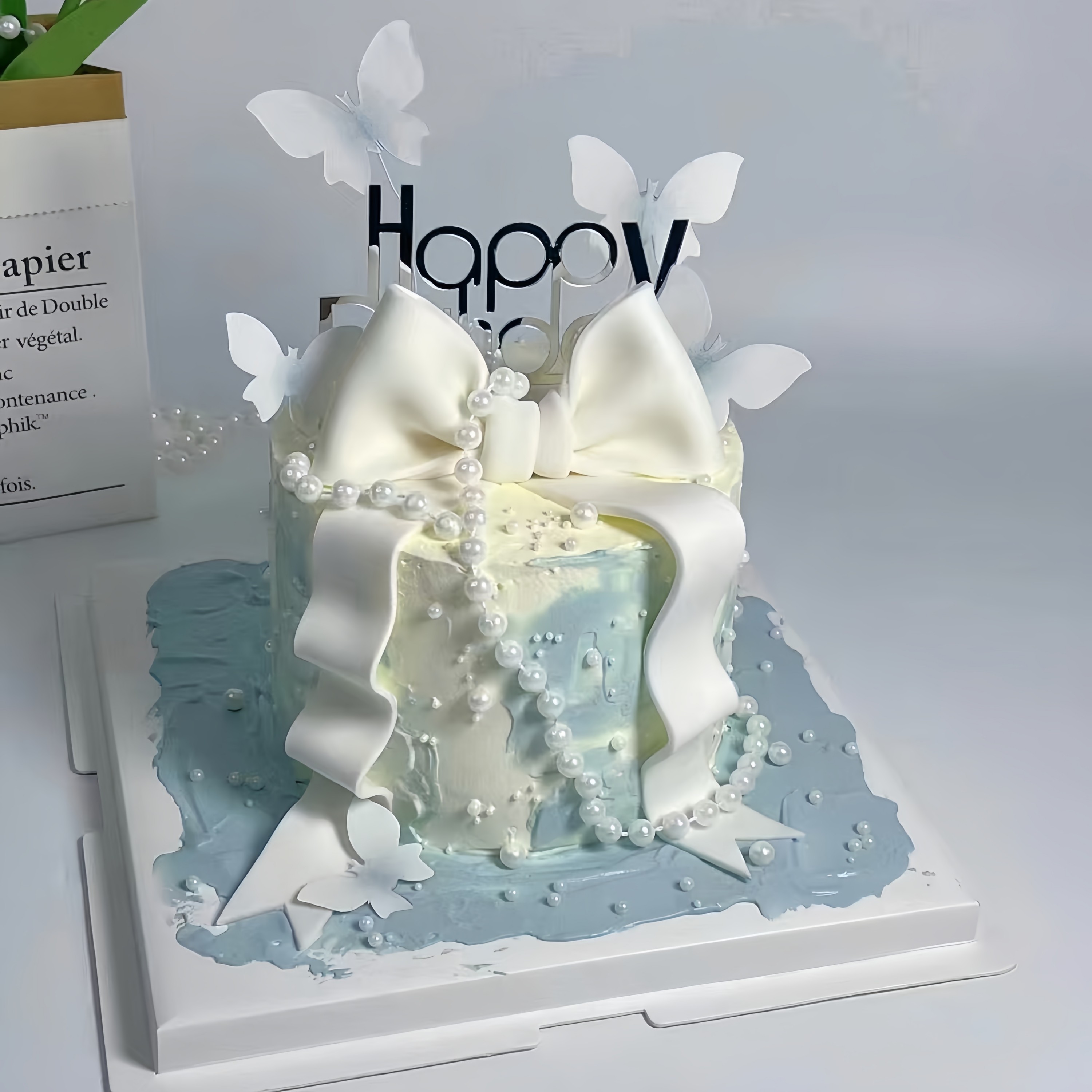 淘宝巧克力生日蛋糕装饰粉红翻糖大小蝴蝶结成品摆件烘培情人节配件