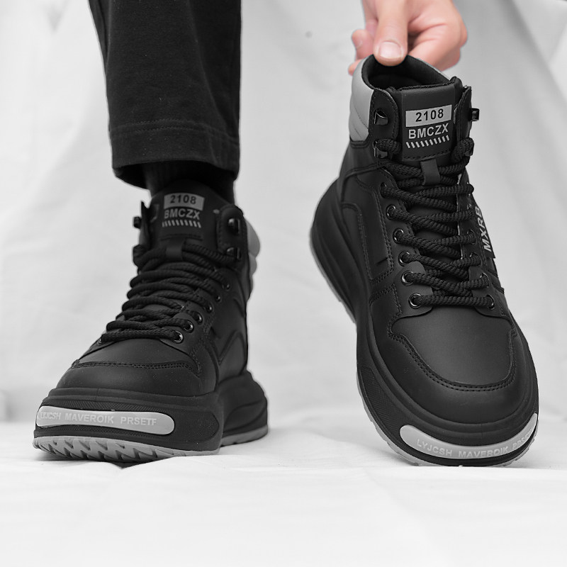 莆田高帮男鞋冬季款,采用优质皮面材质,质感细腻,保暖耐磨,适合寒冷季节穿着。鞋型融合韩版潮流设计,线条简约利落,搭配厚底增高结构,视觉显高又不失稳重。高帮版型有效保护脚踝,兼具运动与休闲风格,轻松驾驭日常出行、校园穿搭或街头潮流。内里加绒设计提升舒适度,防滑耐磨大底增强抓地力,适合青少年长时间行走与轻度运动。无论是搭配牛仔裤、束脚裤还是工装风造型,都能展现个性时尚态度,是冬季不可或缺的百搭潮鞋。