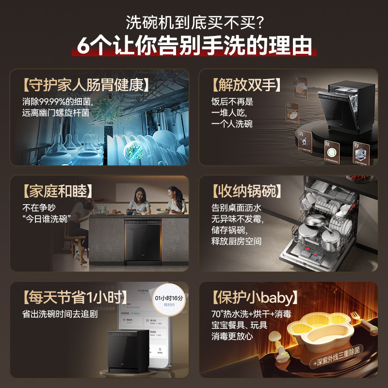 华帝双子星洗碗机16套家用全自动独立台嵌入式消毒柜D1000/D3000