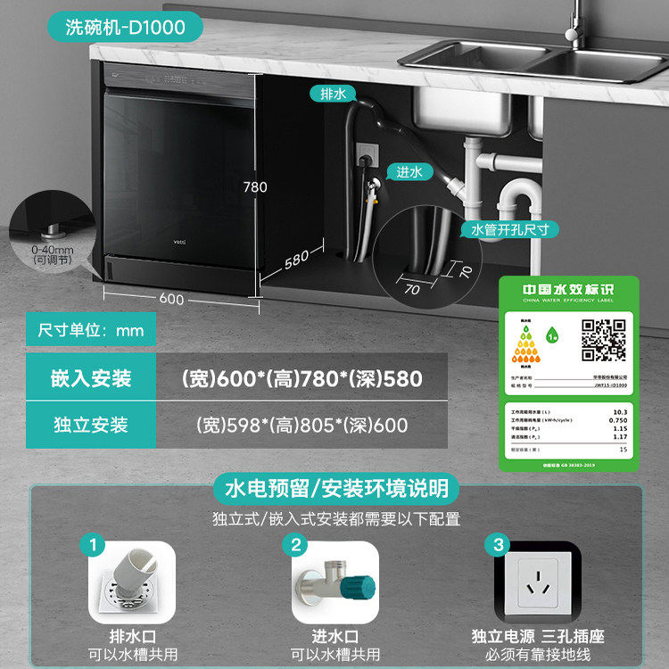天华帝双子星洗碗机16套家用全自动独立台嵌入式消毒柜D1000/D3000