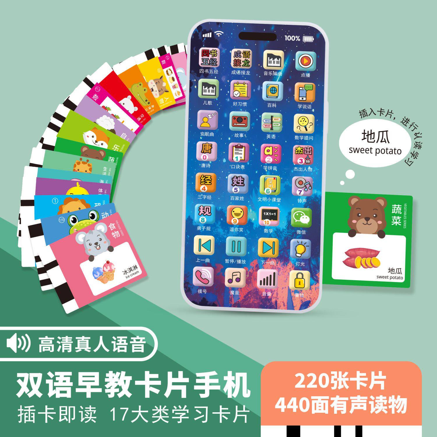 宝宝有声早教机幼儿智能学习机儿童1到3岁英语启蒙学说话手机玩具