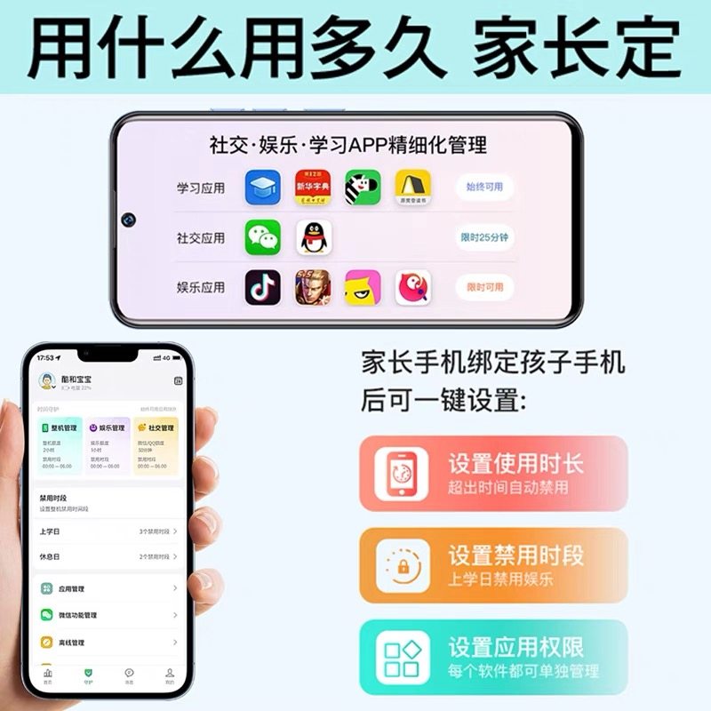 酷和Q10学生专用手机,专为初中、高中生设计,搭载6.5英寸全面屏,视觉清晰,操作流畅。采用安卓智能系统,支持微信、学习类APP等常用应用,兼顾学习与沟通需求。内置强大家长管控功能,可远程管理应用使用时长、限制游戏娱乐、过滤不良信息,帮助孩子远离网瘾。支持实时定位功能,家长可随时掌握孩子位置,保障安全。专为青少年优化系统,兼顾学习与自律,是小学生、青少年健康用网的理想选择。酷和Q10,让科技助力成长,守护孩子每一步。