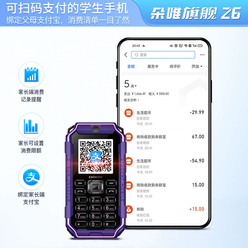 DOOV朵唯Z6是一款专为学生设计的戒网瘾卡片手机,2022年新款,主打超长待机与专注学习功能。采用经典按键设计,非智能系统有效避免游戏、社交软件干扰,帮助孩子远离网络沉迷。内置英语学习模块,支持单词卡片记忆功能,助力小学生至高中生提升英语水平。机身轻薄便携,适合日常携带,同时具备基础通话、短信功能,满足家长与孩子的必要沟通需求。超长待机可达数周,减少频繁充电烦恼。兼顾实用性与学习辅助,是家长为孩子选择健康用机方式的理想之选。