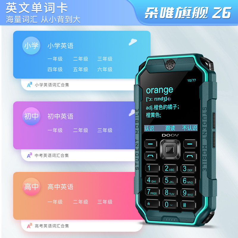 天猫DOOV朵唯z6学生专用戒网瘾卡片手机超长待机儿童小学生初中高中生非智能机按键老年机英语学习单词卡2022新款