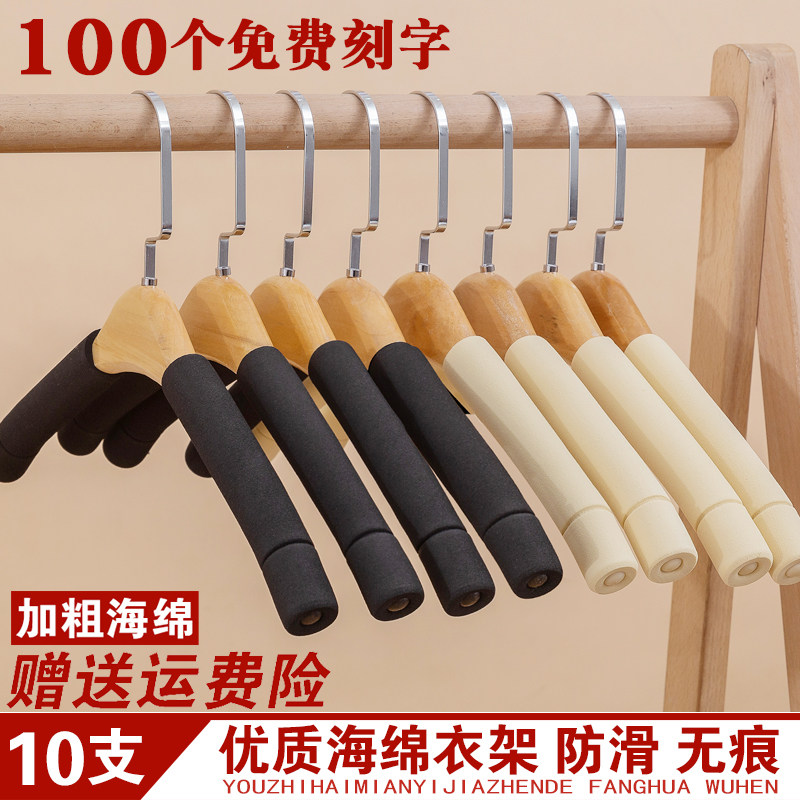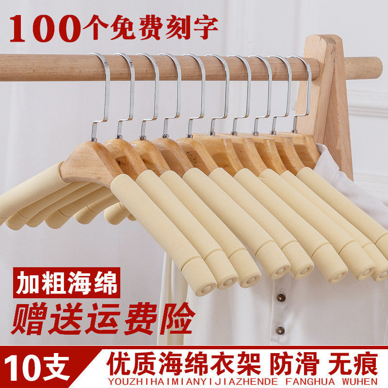 淘宝加粗服装店海绵衣架衣挂防滑衣架成人实木家用无痕海绵衣撑衣服架