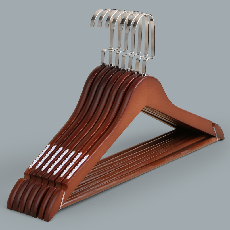 淘宝实木衣架复古木质挂衣架防滑齿家用衣橱衣撑服装店无痕酒店晾衣架
