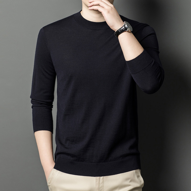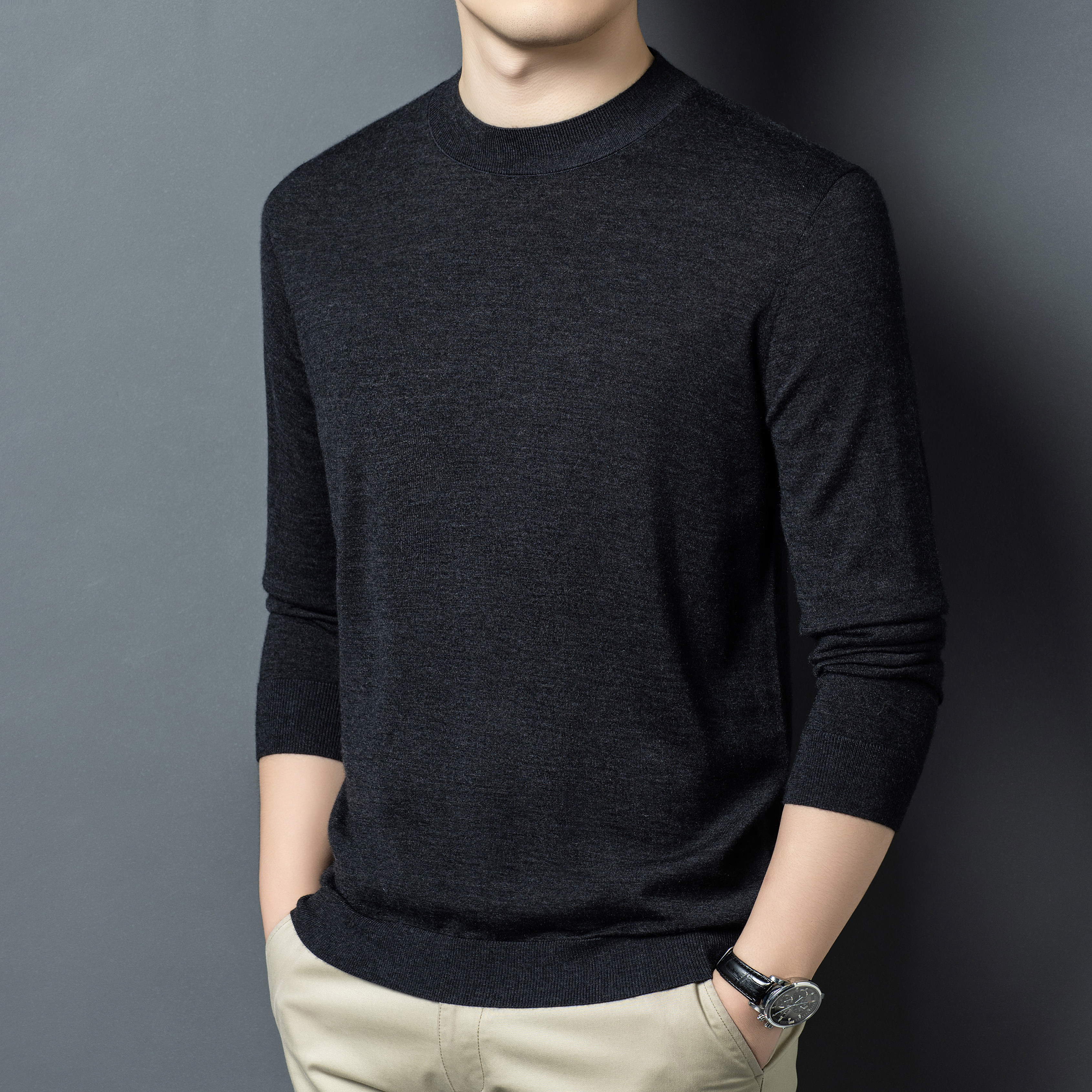 王嘉尔同款韩式半高领羊绒毛衣男式秋冬秋裤黑色内搭衬衫潮牌修身