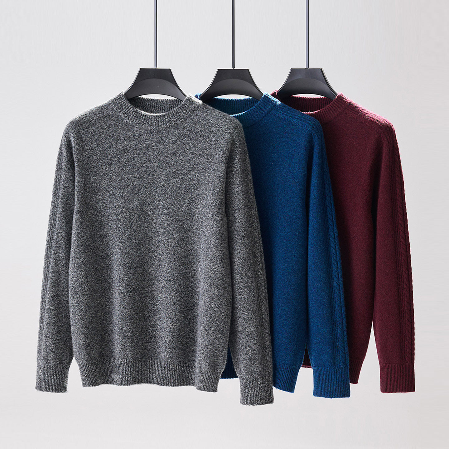 天猫春竹秋冬新款岛精两股山羊绒无缝圆领合体双袖绞花长袖男士羊绒衫