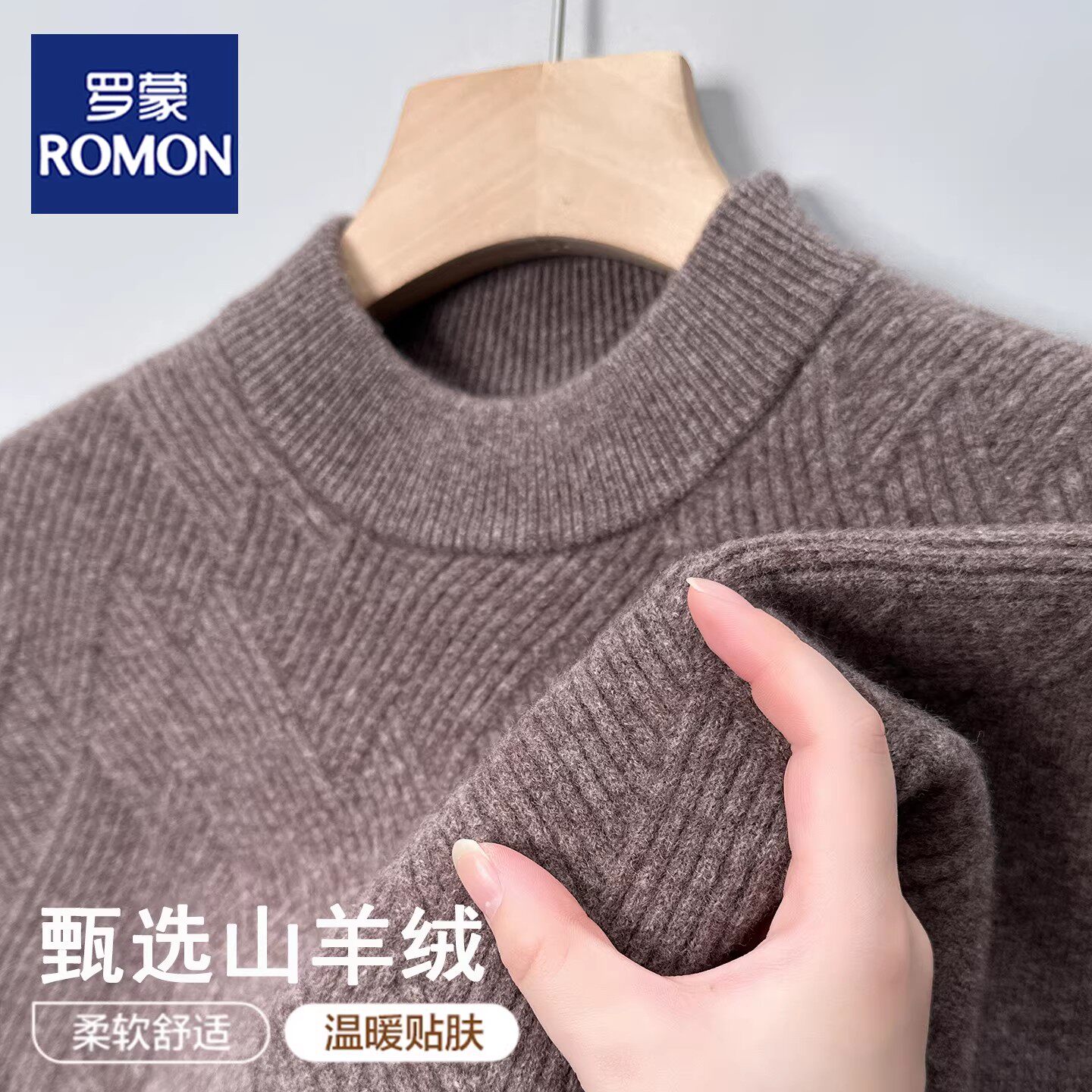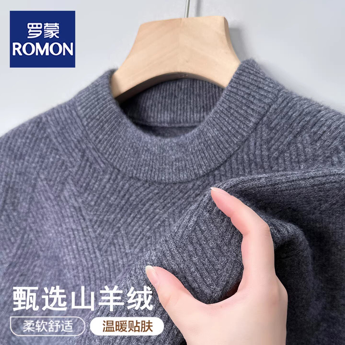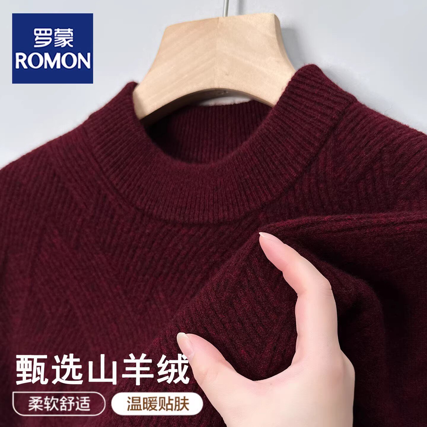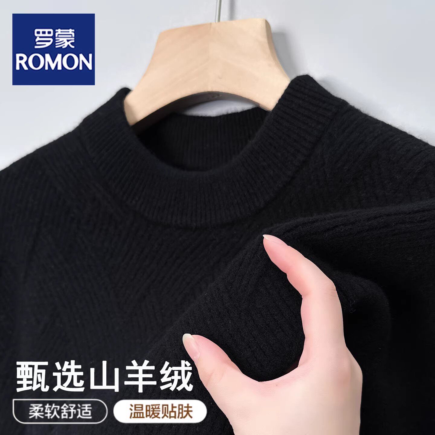 淘宝罗蒙高端山羊绒衫男圆领加厚保暖纯色毛衣冬季套头羊毛针织打底衫