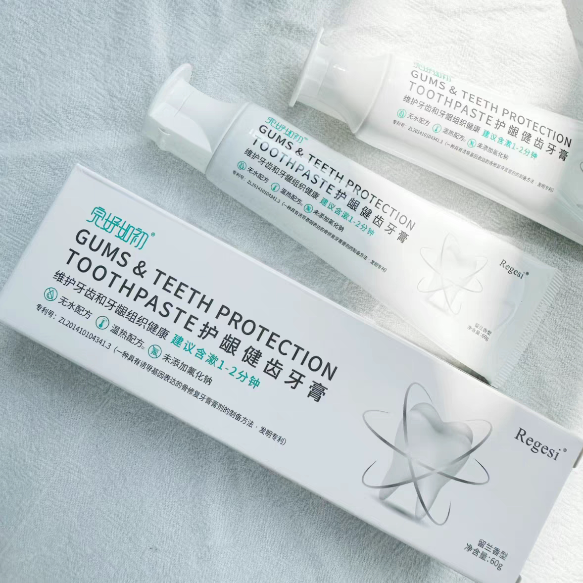 regesi锐杰斯护龈健齿完好如初牙釉质笑得甜牙膏,专为守护口腔健康而研发。采用创新再生医学材料regesi,能有效促进牙釉质再矿化,修复微小损伤,让牙齿重现坚固光泽。牙膏温和清洁,深入清洁牙缝,减少牙菌斑,强健牙龈,预防出血与敏感。清新果味配方,带来持久甜美笑容。经临床验证,长期使用可显著提升口腔整体健康水平。无论是日常护理还是针对性修复,锐杰斯都能让牙齿“完好如初”,绽放自信甜笑。适合全家人使用,是守护口腔健康的理想之选。
