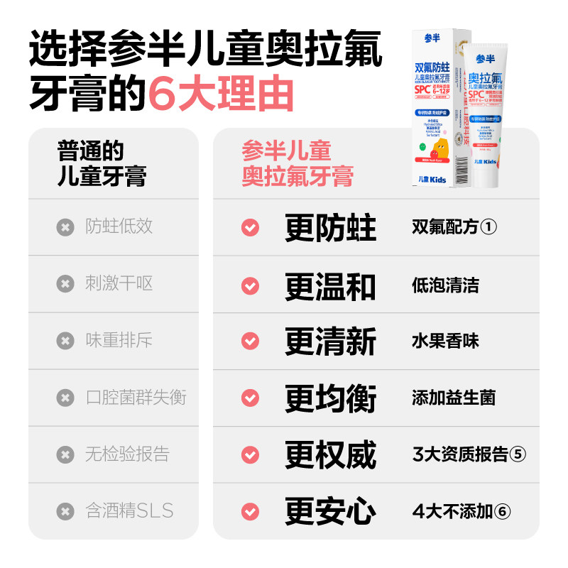 天猫参半儿童牙膏德国奥拉氟宝宝含氟牙膏3-6-12岁换牙期防蛀牙防龋齿