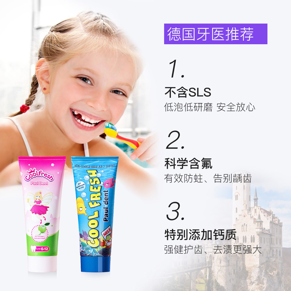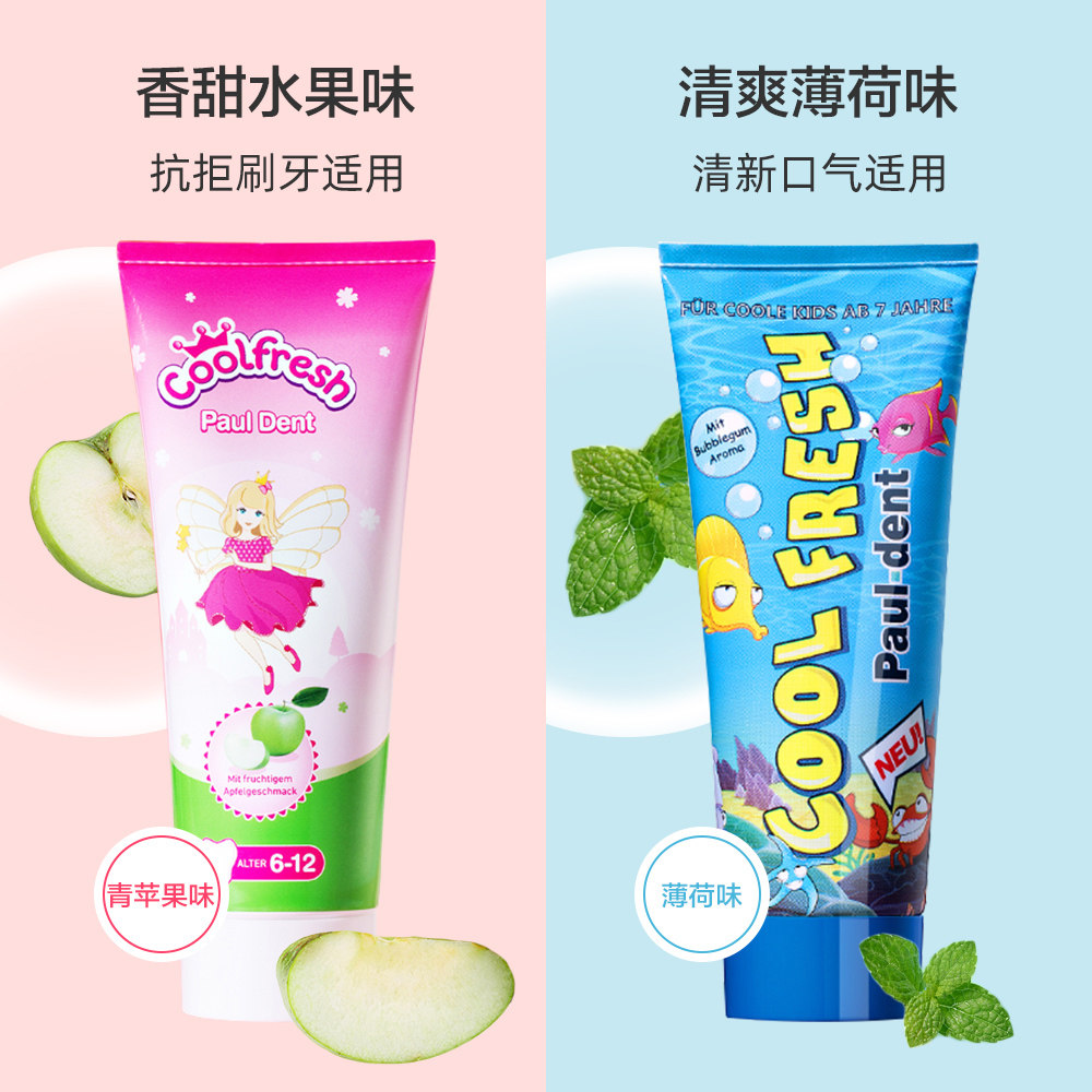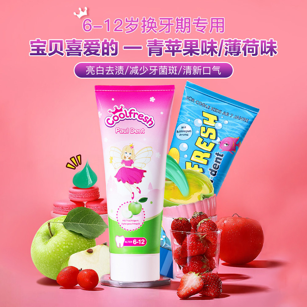 天猫Pauldent宝儿德儿童牙膏含氟可防蛀牙3-6一12岁以上到换牙期正品