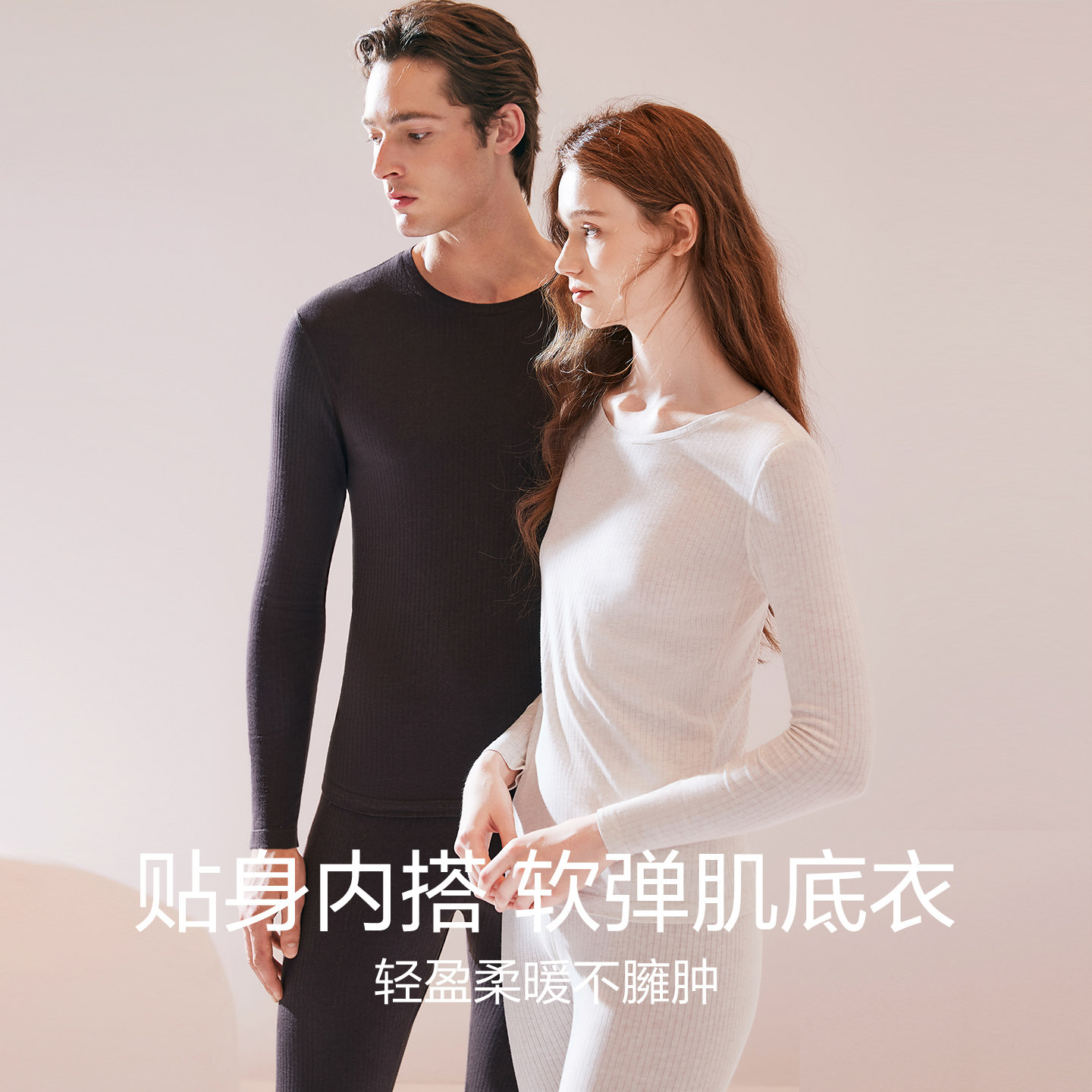 天猫红豆绒棉花糖H1内衣男女士薄款磨毛秋衣秋裤色纺A类打底保暖套装