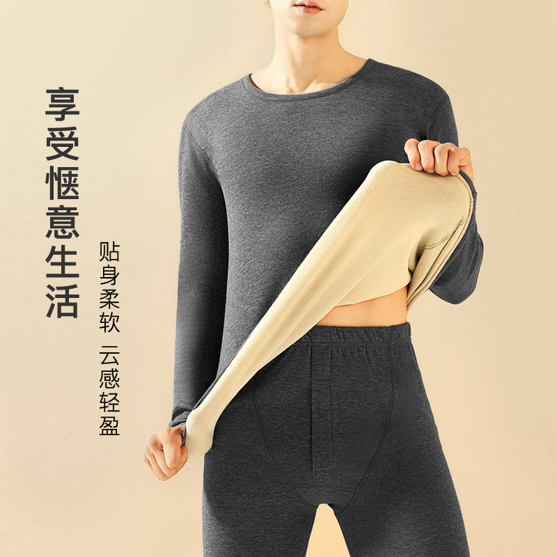 天红豆男士内衣秋衣秋裤棉莫代尔磨毛含羊绒薄衬衫内搭冬季保暖套装