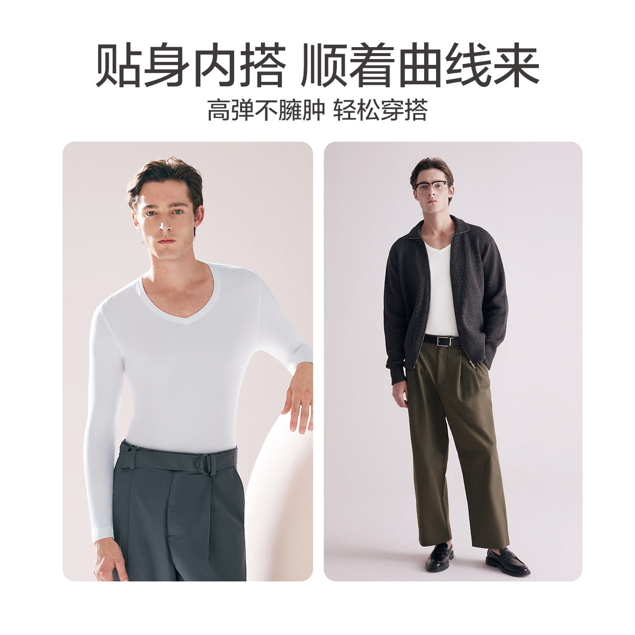 天猫红豆男士内衣秋衣秋裤棉莫代尔磨毛含羊绒薄衬衫内搭冬季保暖套装