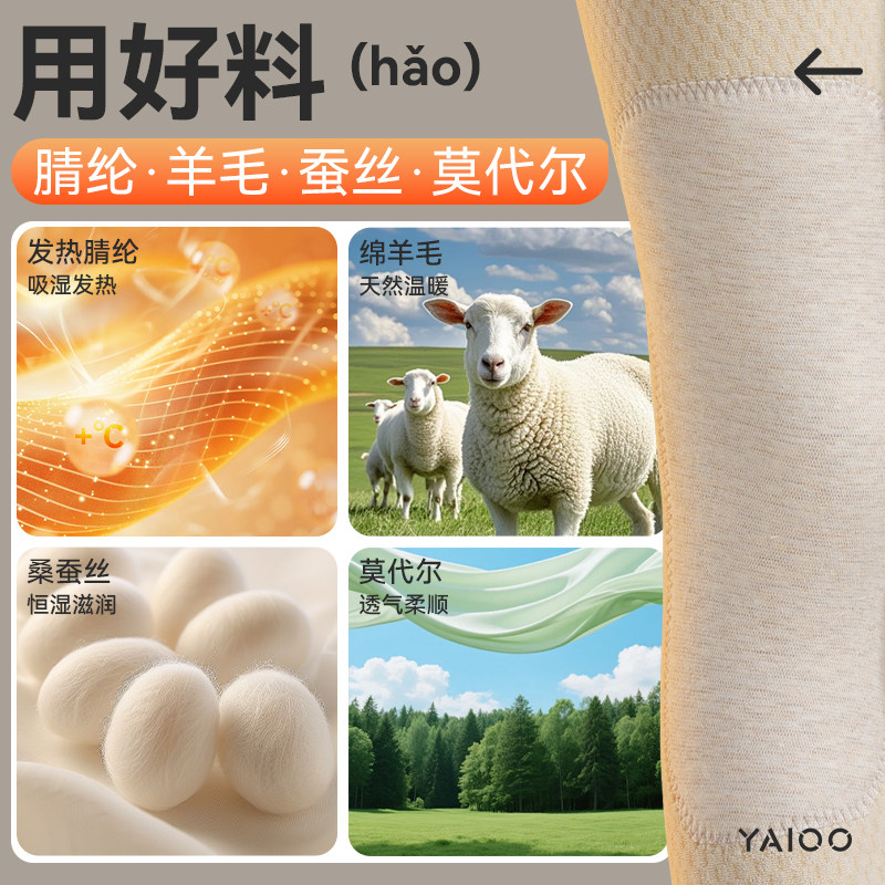 淘六只兔子抑菌保暖内衣女羊毛蚕丝肌底衣秋冬打底秋衣秋裤修身套装