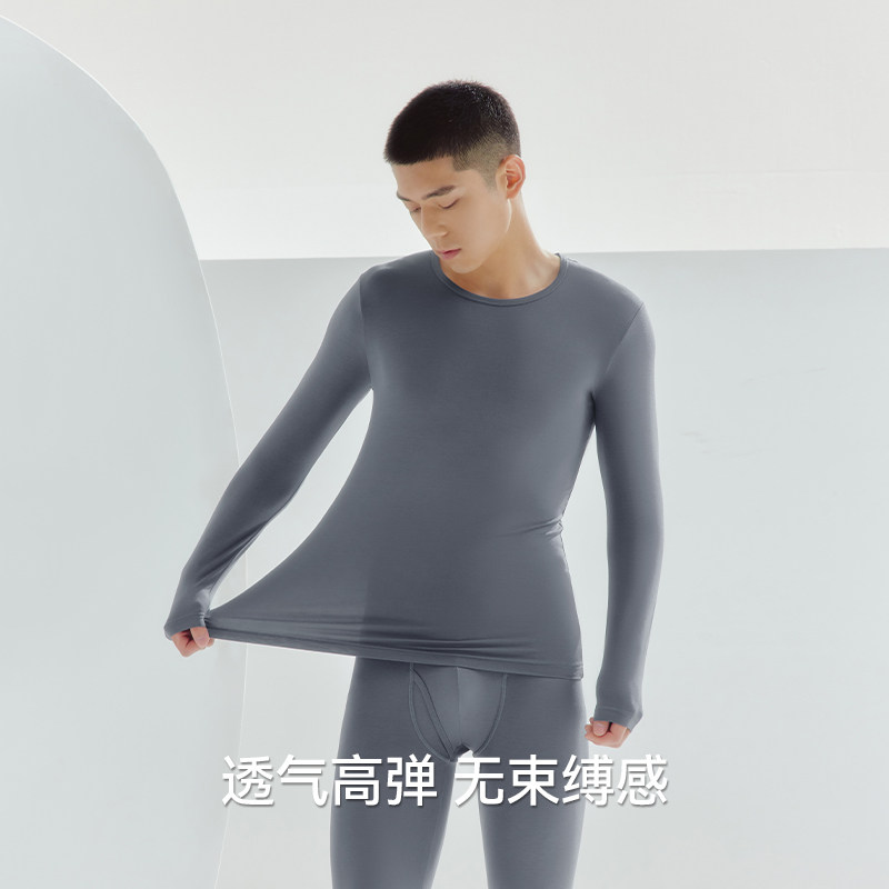 天花花公子男士纯棉保温秋衣秋裤套装保暖内衣单件上衣打底全棉毛衫