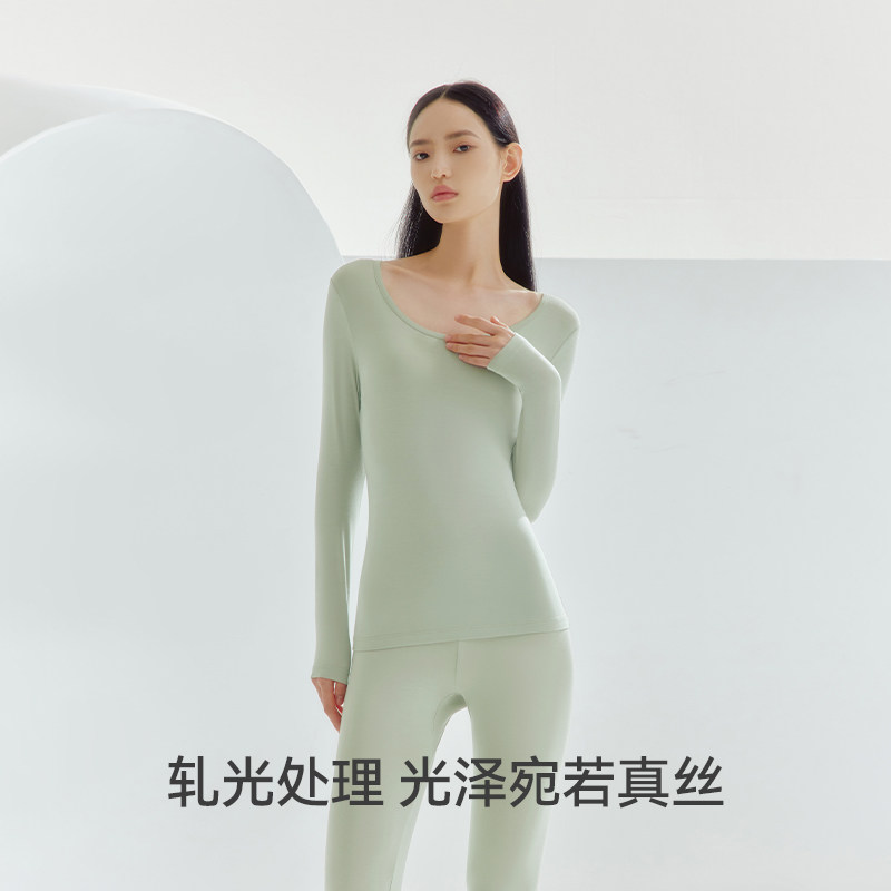 天秋冬薄款前后U领大圆领长袖T恤打底衫长裤套装秋衣秋裤纯色莫代尔