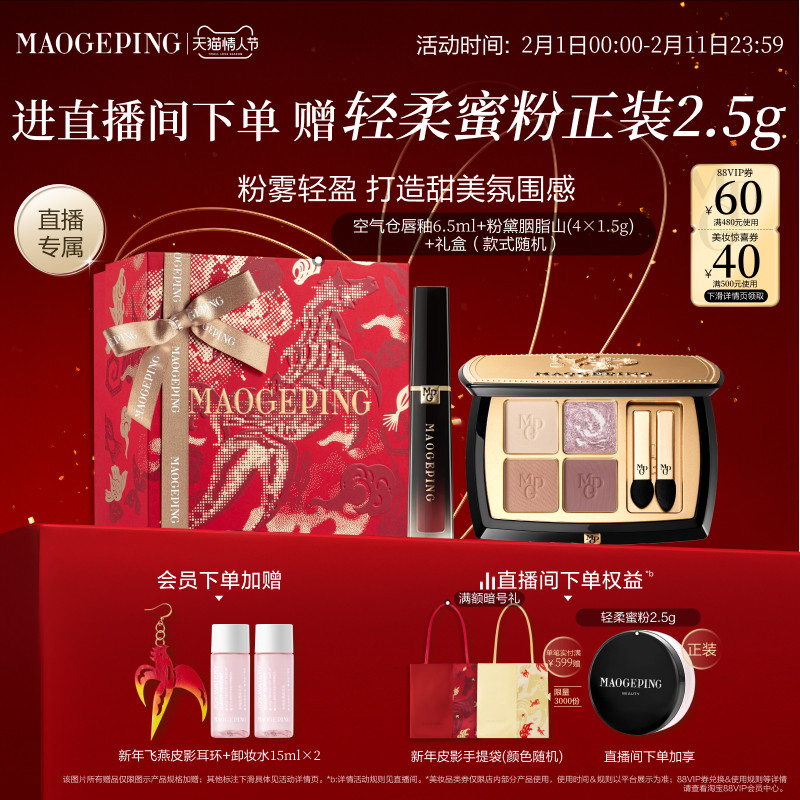 天猫【直播专享】毛戈平唇釉四色大地眼影盘腮红彩妆礼盒套装新年礼物