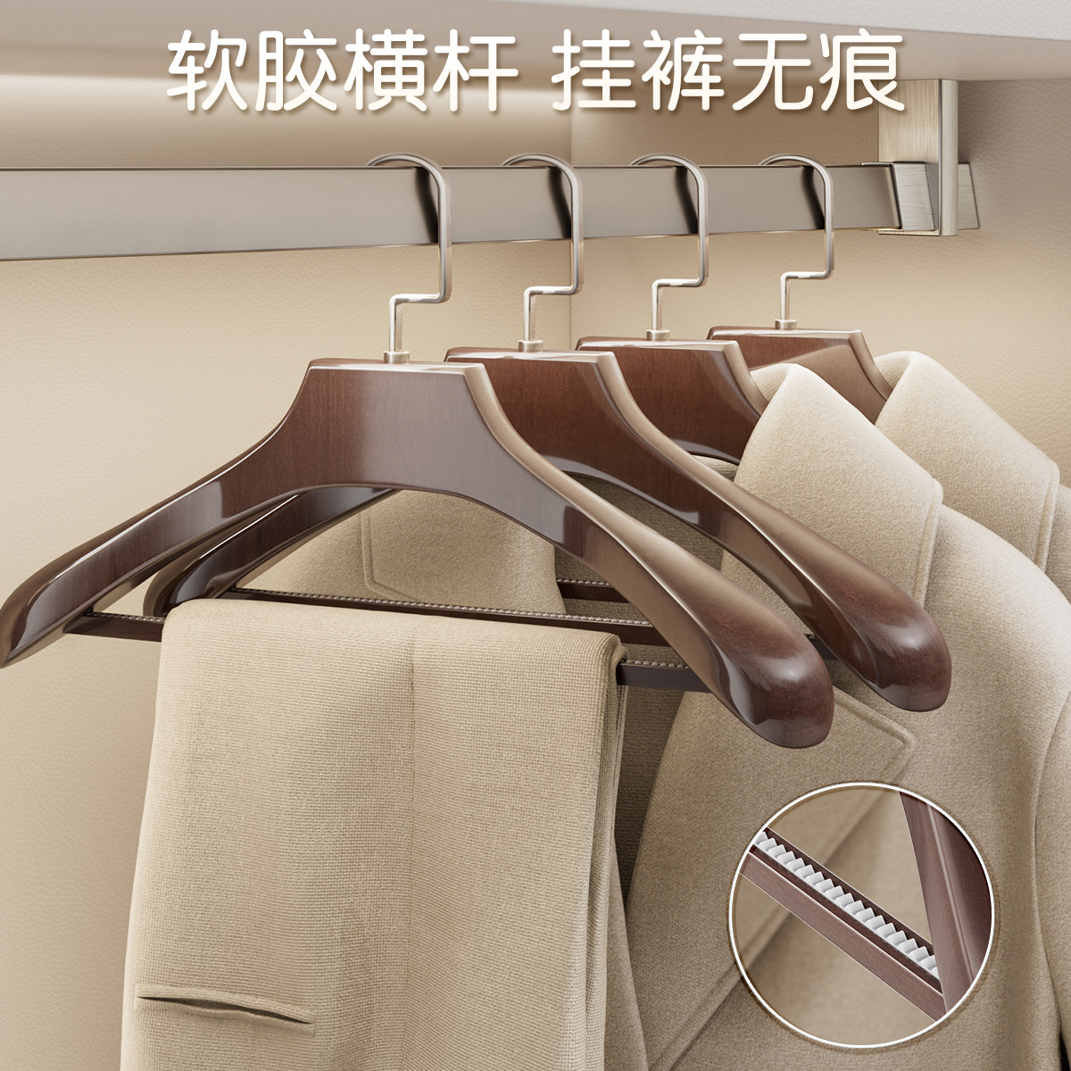 家用宽肩实木衣架不鼓包防变形西装西服专用无痕晾晒挂衣架子衣撑