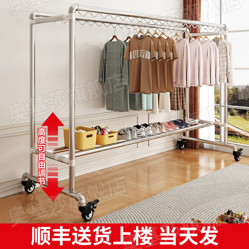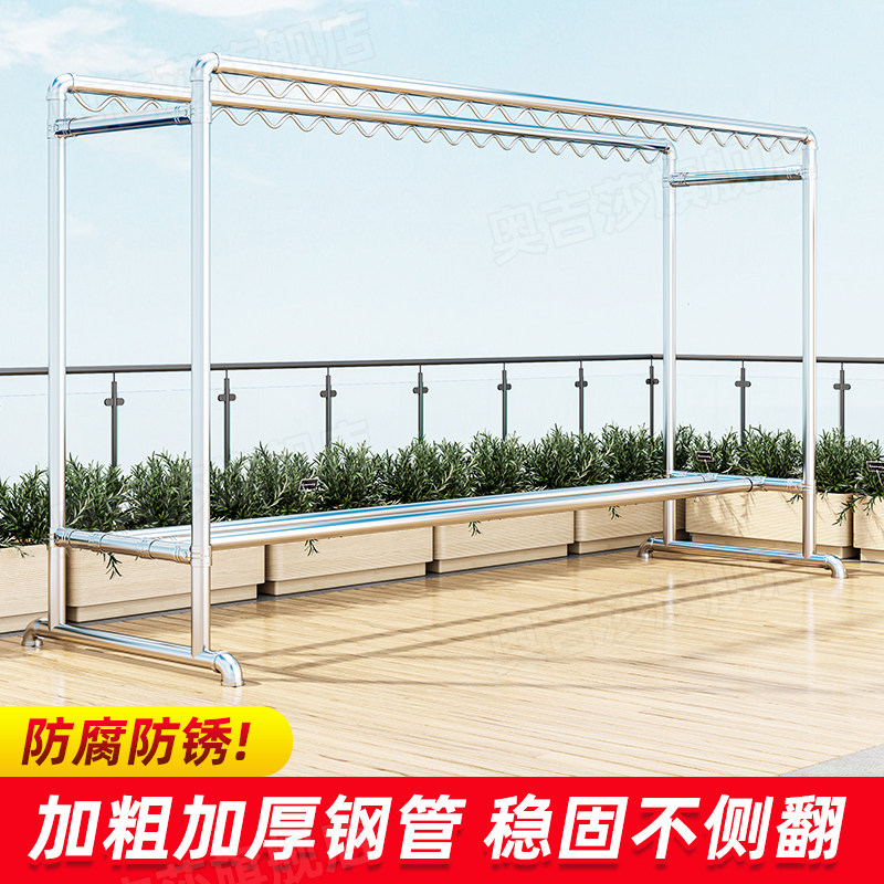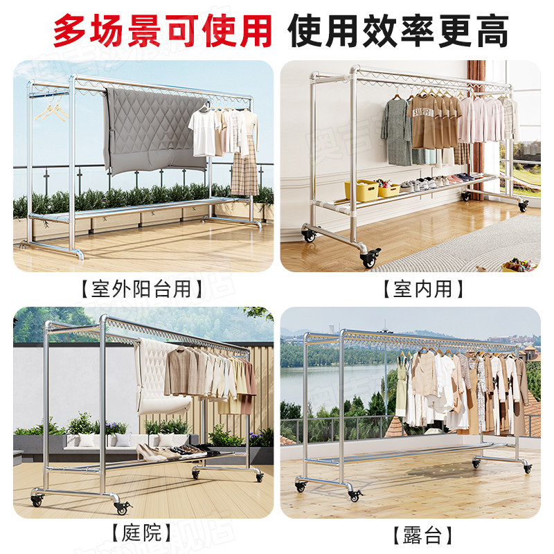 淘304202不锈钢晾衣架落地加粗加厚户外防锈晒衣服被子家用阳台晒衣
