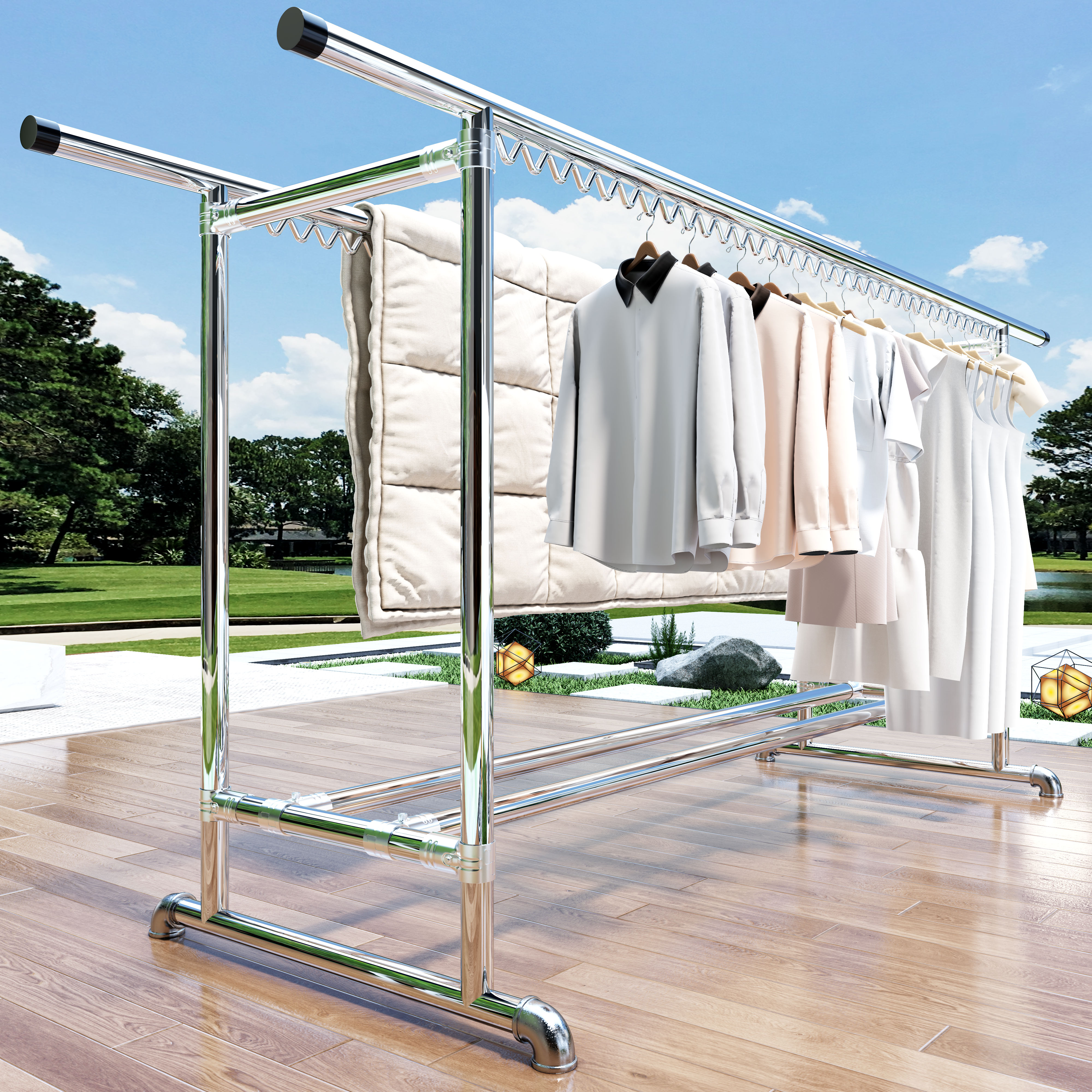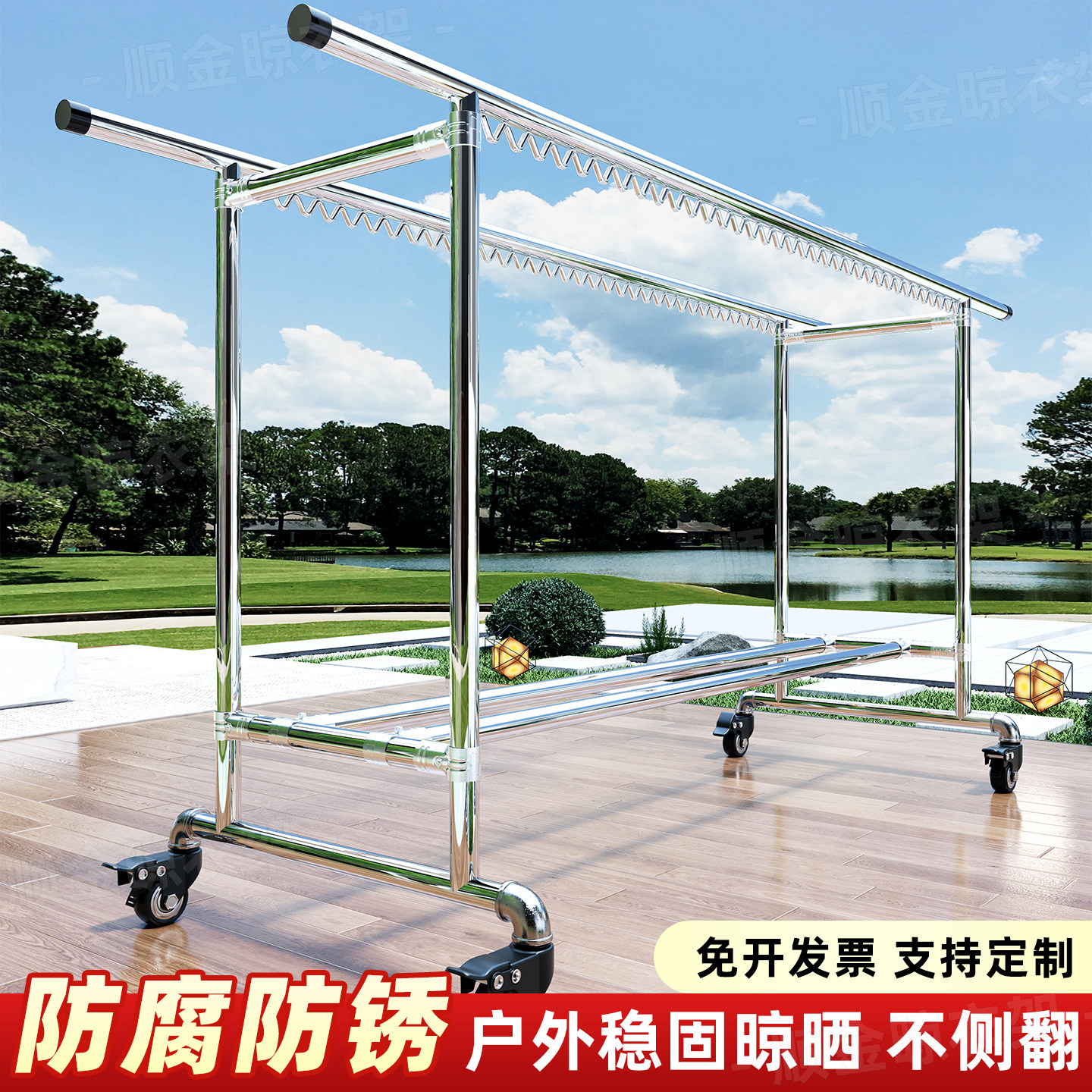 淘宝304202不锈钢晾衣架落地加粗加厚户外防锈晒衣服被子家用阳台晒衣