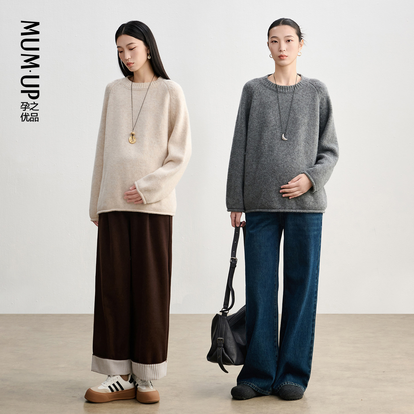 淘◆AMUM孕妇装◆懒人万能搭~时髦老钱风宽松直筒加绒慵懒感奶奶裤