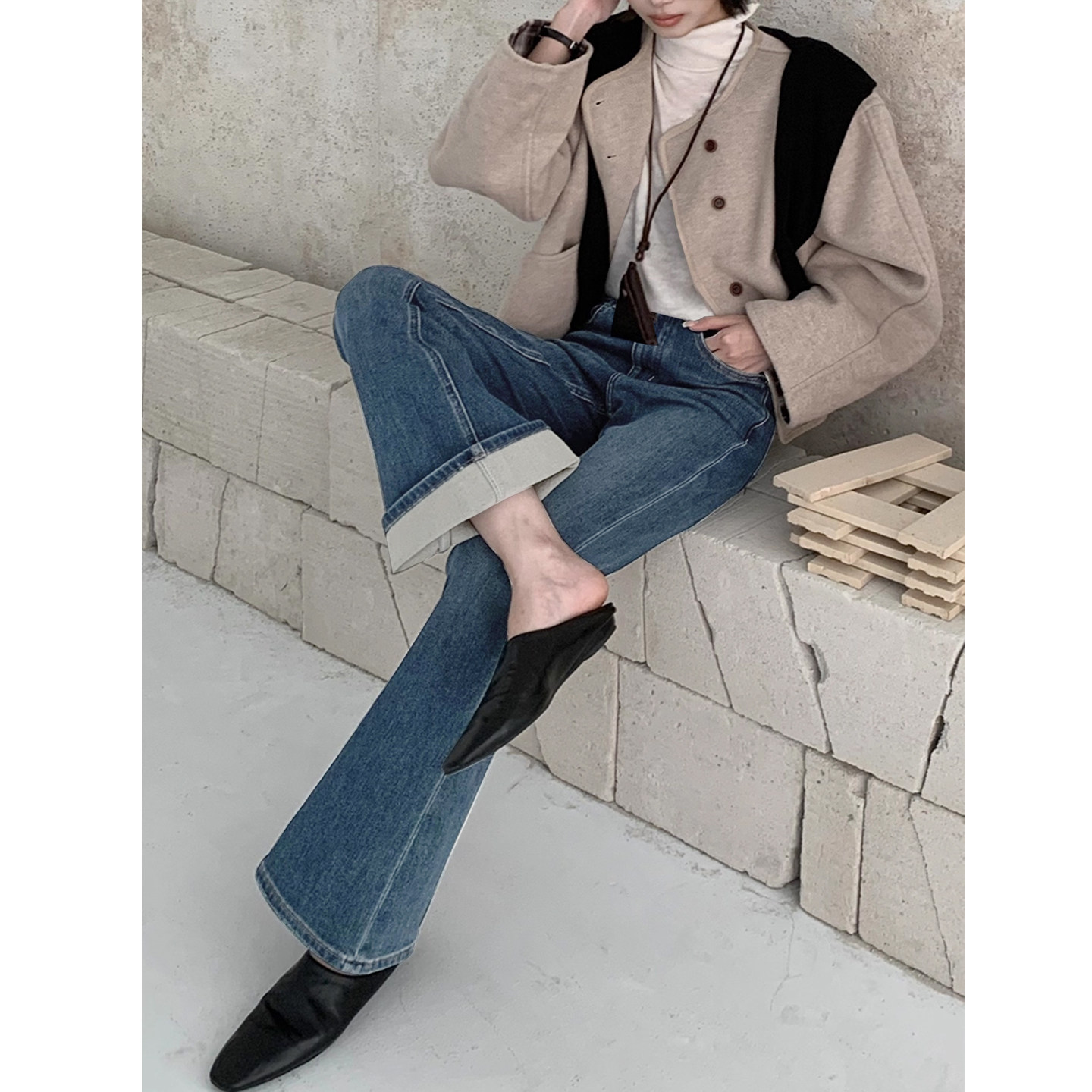 淘宝孕妇裤子秋冬装弹力微喇叭裤时尚显瘦托腹宽松加绒修身韩系牛仔裤