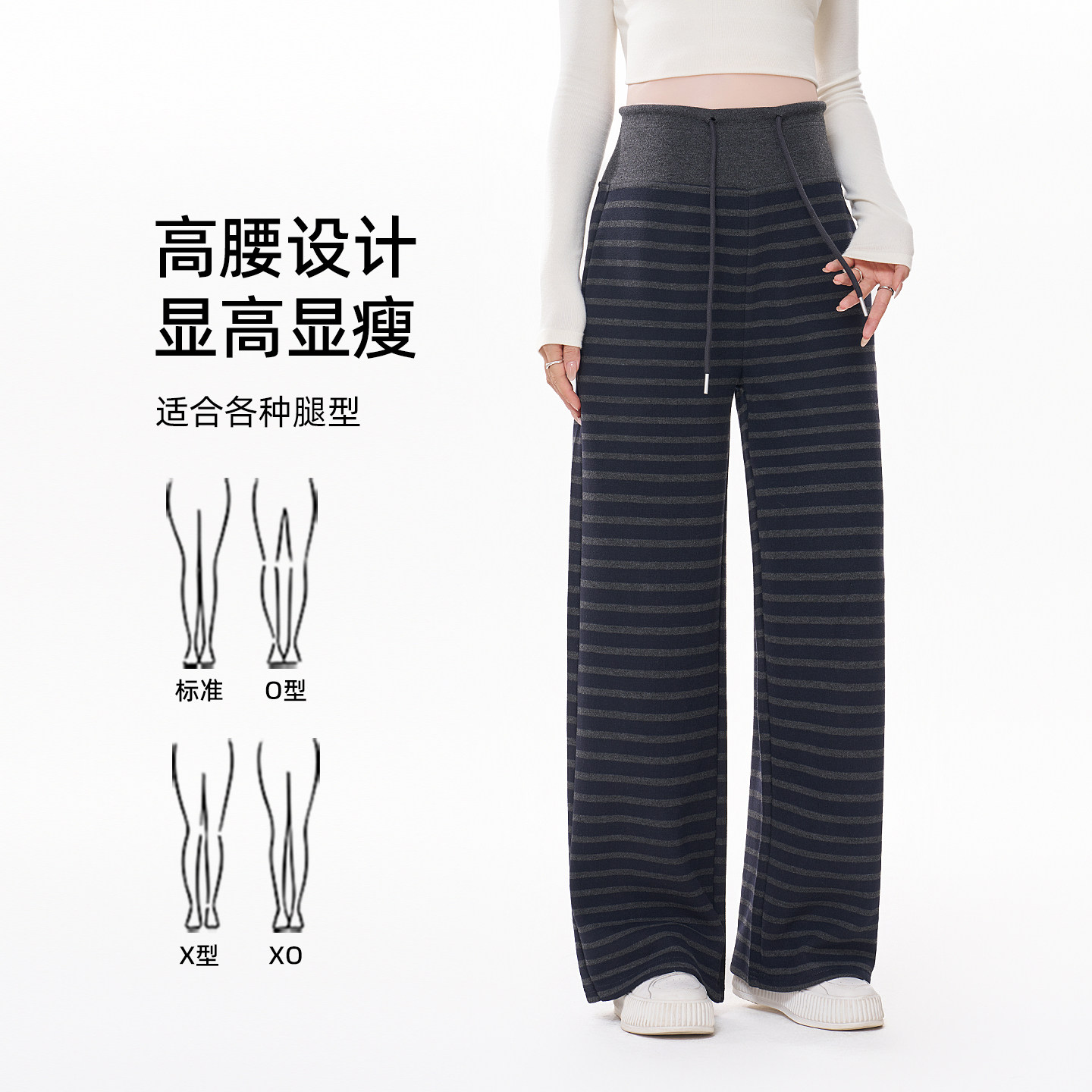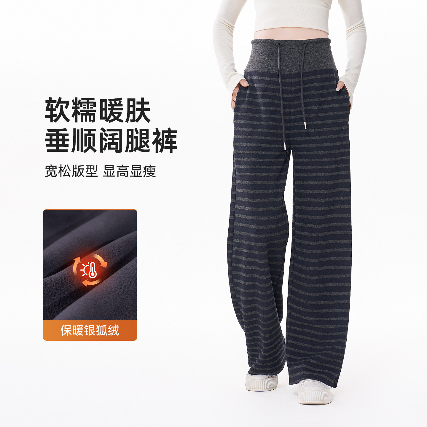 淘宝MASANON孕妇裤2026新款冬季小个子条纹阔腿裤孕期加绒加厚保暖裤