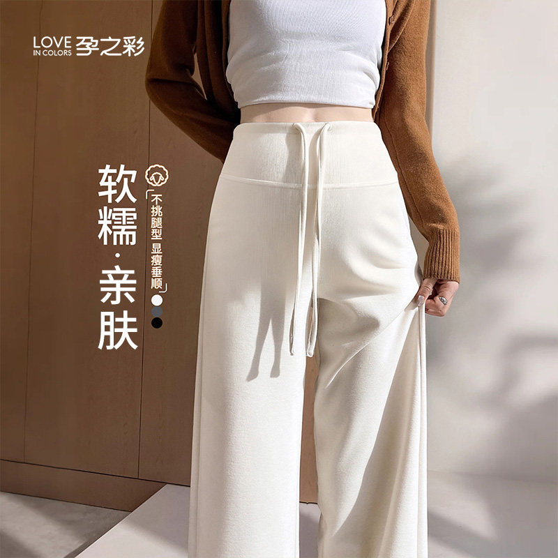 淘婧麒孕妇裤秋冬2025新款外穿加绒加厚阔腿裤子孕期不勒肚子孕妇装
