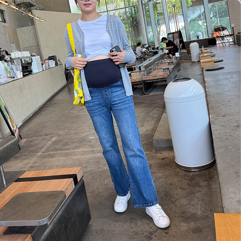 淘孕妇裤子秋冬装弹力微喇叭裤时尚显瘦托腹宽松加绒修身韩系牛仔裤