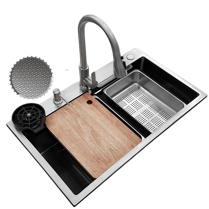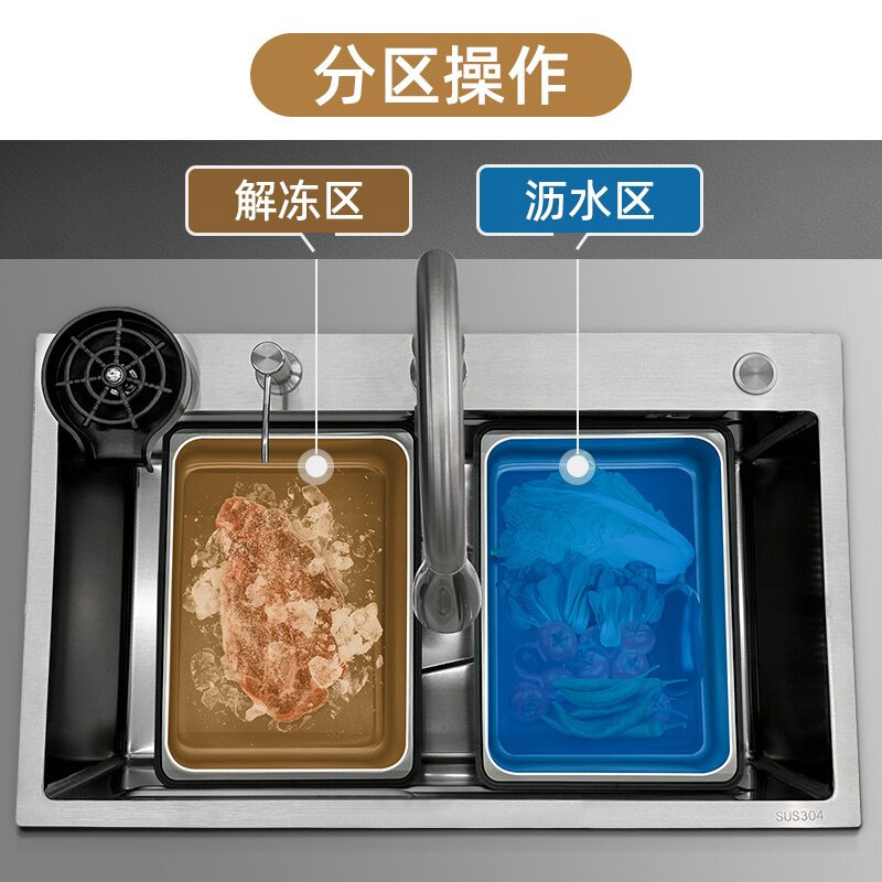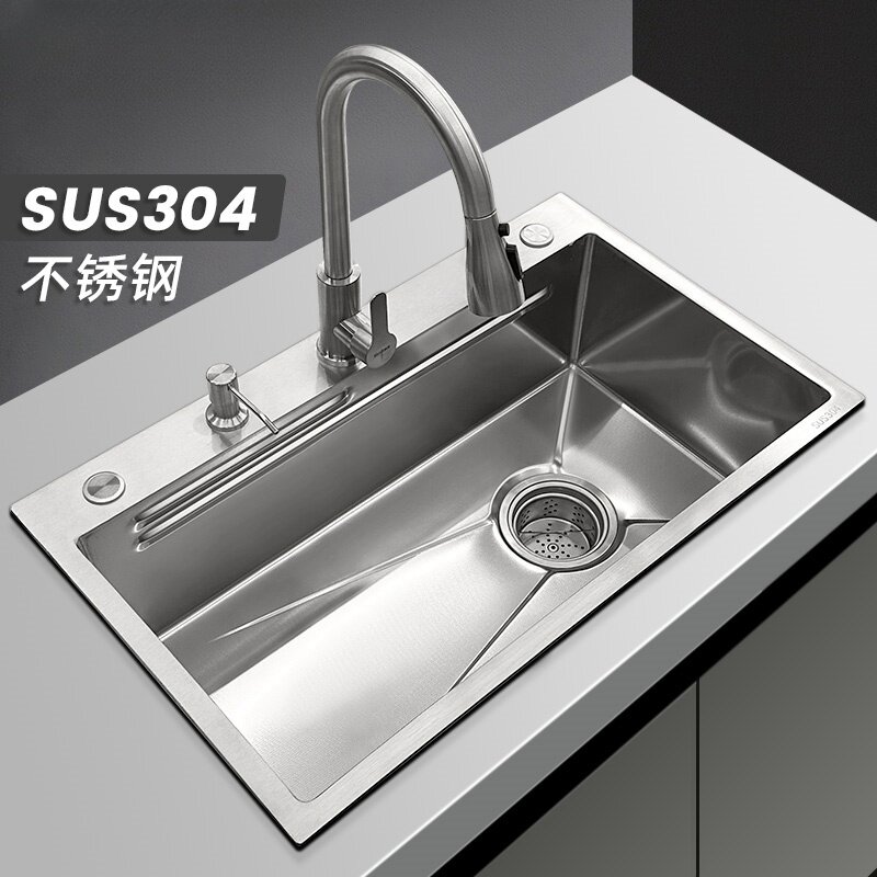 淘宝小米粒sus304不锈钢原色水槽特厚大单槽厨房洗菜池洗碗盆沥水篮