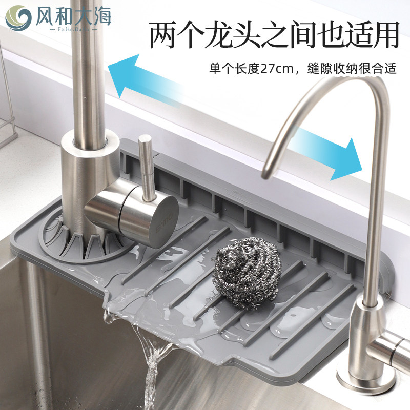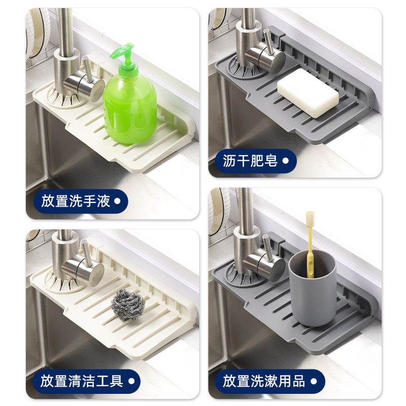 天猫水龙头侧孔硅胶沥水垫厨房水槽可折边防溅水垫卫生间洗水池置物垫