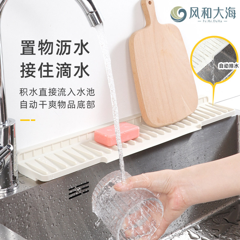 淘宝厨房水槽开口排水垫台面斜坡沥水垫可折边窄边水龙头防溅垫置物垫