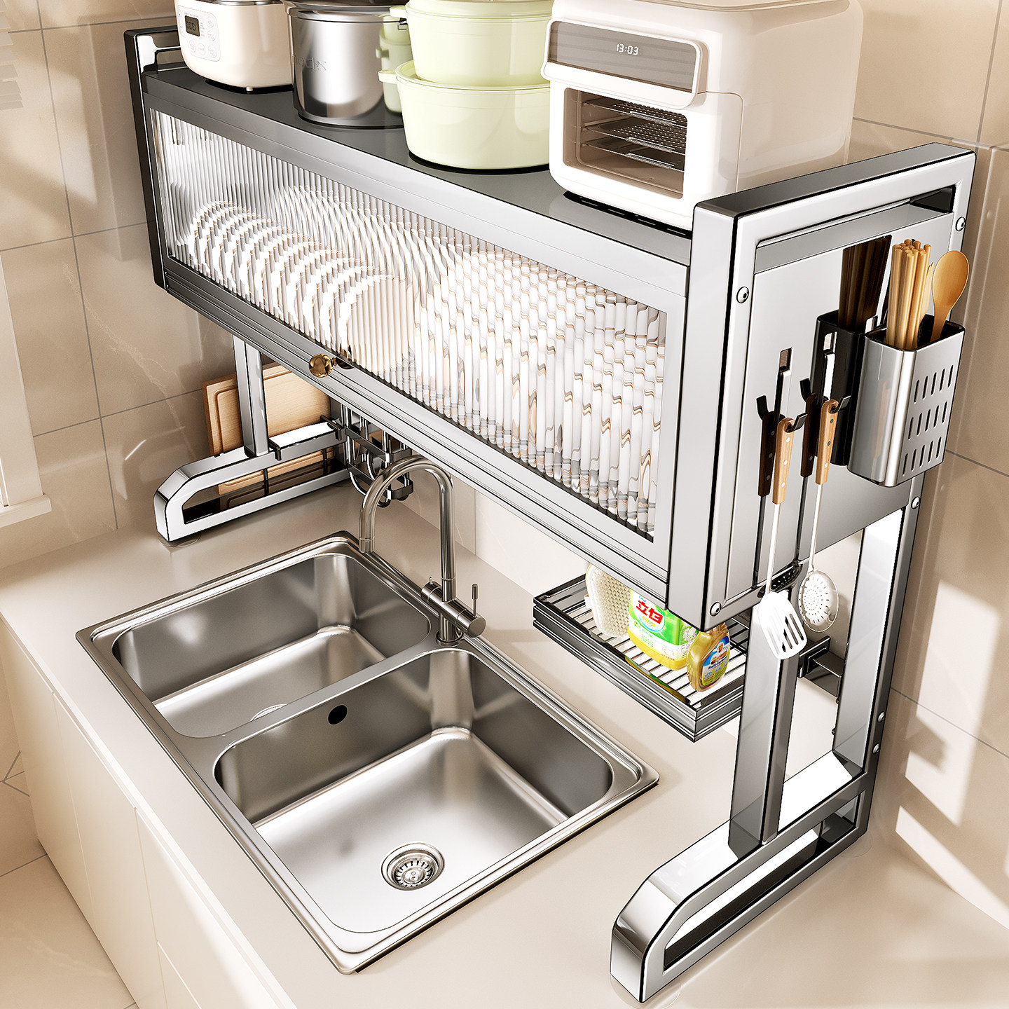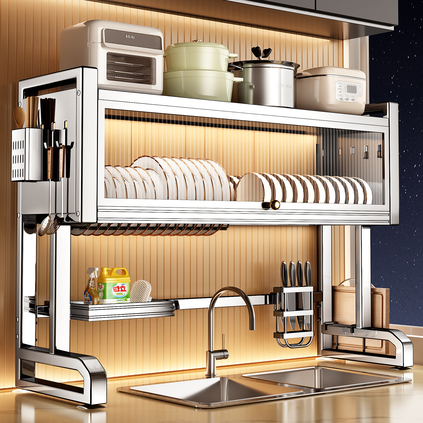 不锈钢厨房碗碟收纳架是一款多功能水槽置物架,专为优化厨房空间而设计。采用优质304不锈钢材质,防锈耐腐蚀,坚固耐用,承重力强。可灵活放置于洗碗池上方或台面,有效利用垂直空间,实现碗、盘、筷子、刀具等餐具的分类收纳与沥水。底部配有接水盘,防止水滴落台面,保持厨房干爽整洁。层架结构科学合理,通风透气,加速晾干,避免细菌滋生。安装简便,无需打孔,稳固防滑。不仅提升厨房整洁度,更让取用餐具方便快捷,是现代家庭厨房不可或缺的实用收纳神器。