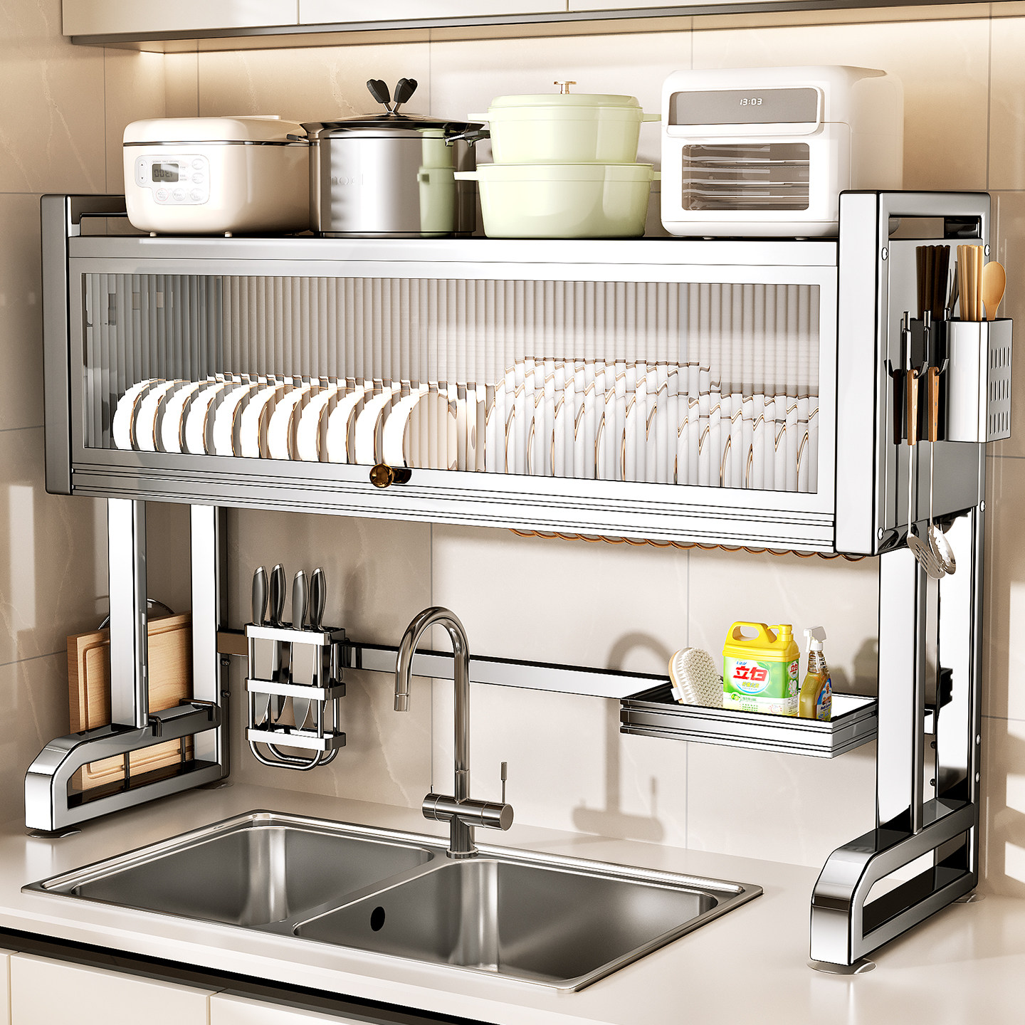 天猫不锈钢厨房碗碟收纳架多功能水槽置物架洗碗池上放碗盘收纳沥水架