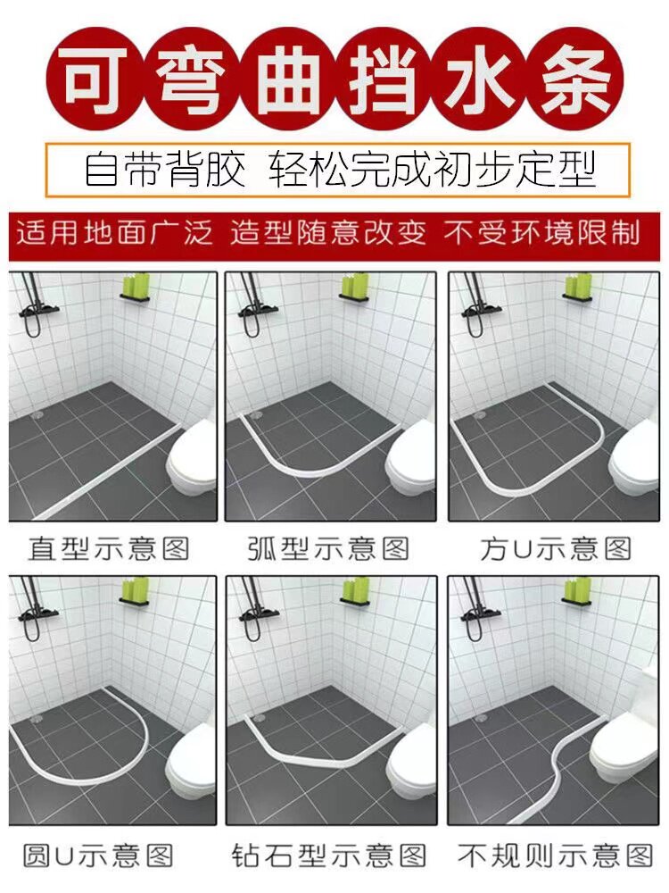 浴室挡水条、卫生间防水条、干湿分离阻水条及洗碗池水槽隔水软胶条,是一款多功能自粘式防水密封产品。采用优质柔性PVC或硅胶材质,柔韧耐用、防水防霉,有效阻隔水流外溢,实现干湿分区。其背胶设计安装简便,无需工具,撕贴即用,适用于浴室门边、淋浴区、洗手台、厨房水槽等多种场景。不仅能防止地面湿滑,提升居家安全,还能避免水汽侵蚀柜体,延长家具寿命。表面光滑易清洁,长期使用不变形、不脱落,是家庭防水防潮的理想选择,兼顾实用性与美观性,让家居环境更干爽整洁。