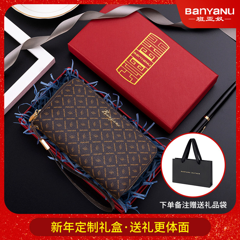 班亚奴正品2025新款真皮大容量钱包男长款头层牛皮男款拉链手拿包