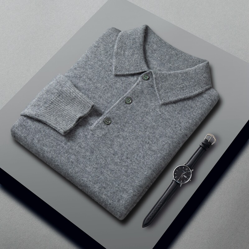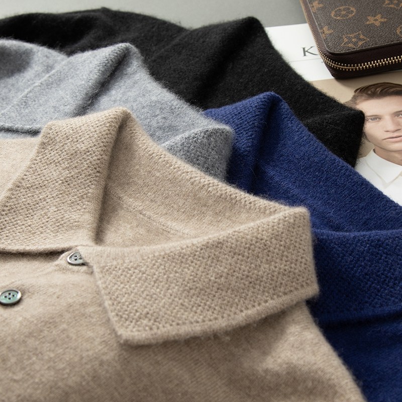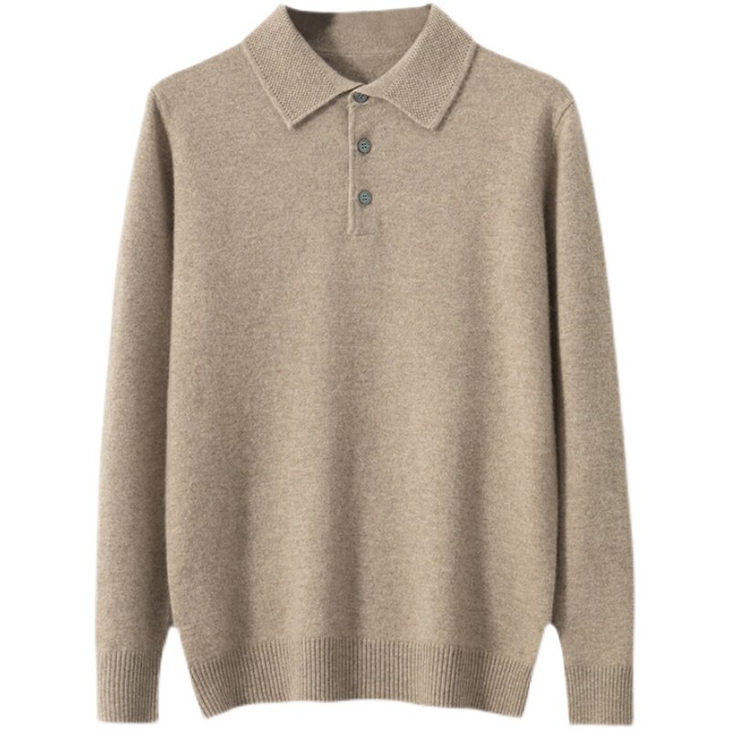 淘宝A类100%山羊绒衫男士polo领衬衣重磅加厚宽松翻领长袖羊毛t恤商务