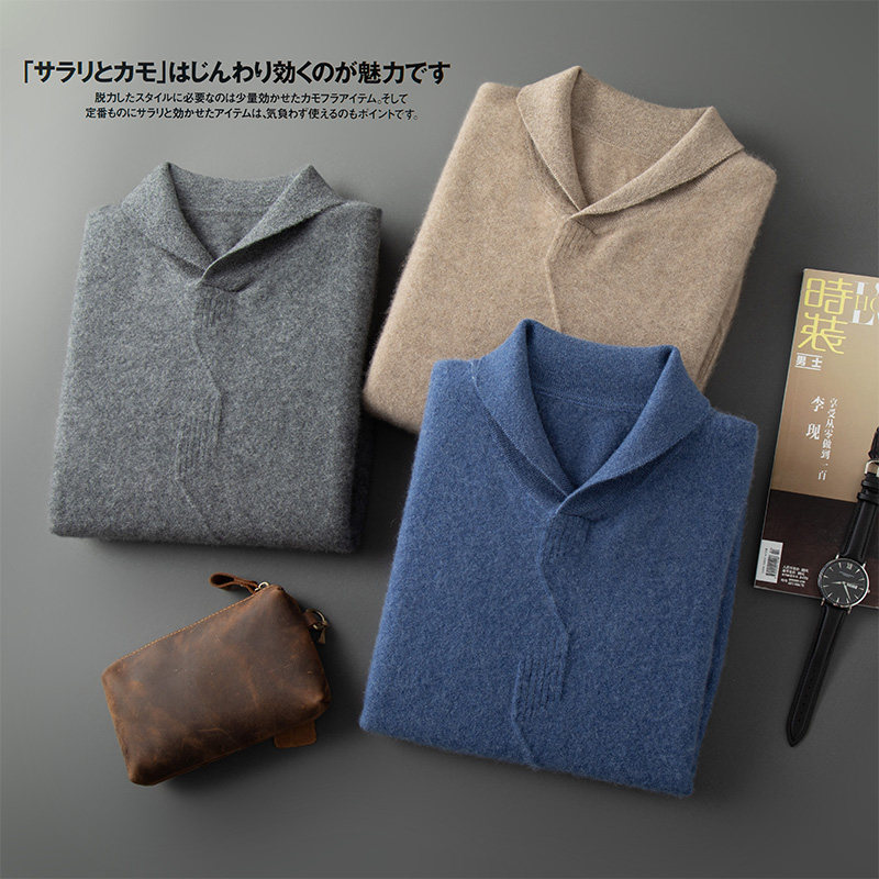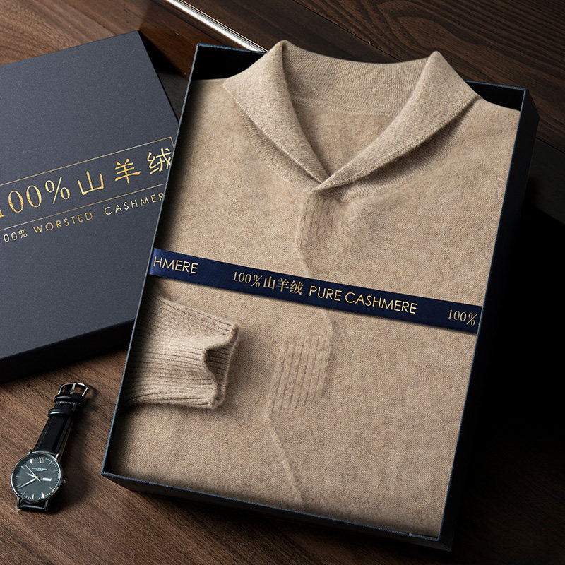 淘宝A类第一道青果领羊绒衫男纯山羊绒秋冬翻领针织衫舒适保暖毛衣