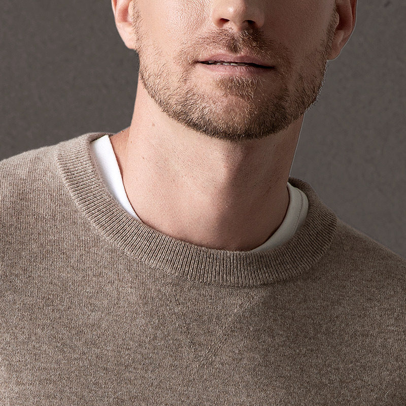 高端奢暖100%山羊绒衫男秋冬16针精纺工艺轻盈柔糯保暖打底针织