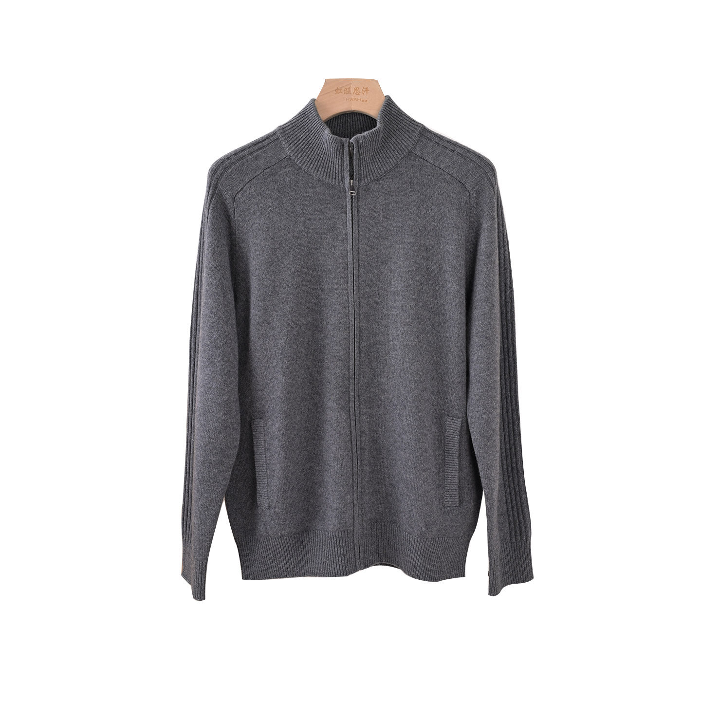 淘宝25新品 男士居家上班百搭好穿半高领肩袖抽条100纯山羊绒长袖开衫