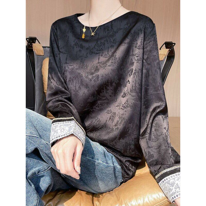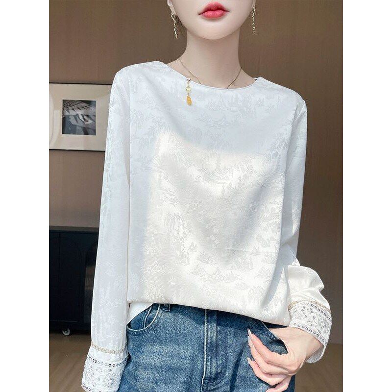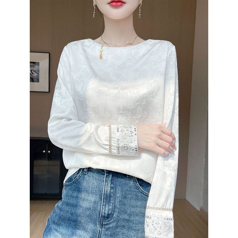 淘宝时尚缎面提花衬衫女2025新款复古国风新中式宽松上衣秋季白色衬衣
