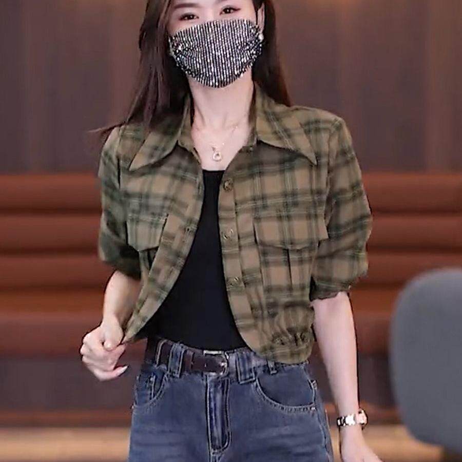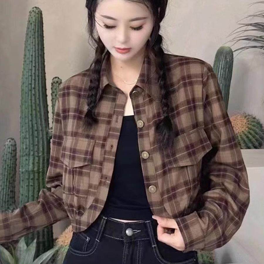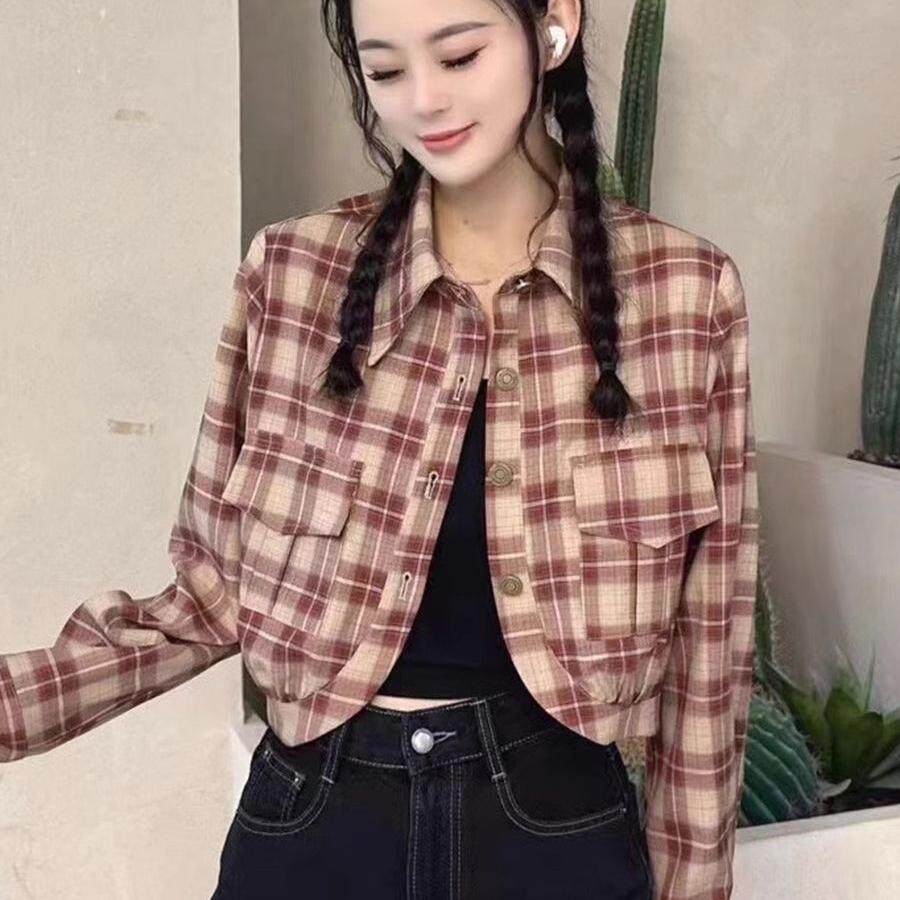 淘宝复古格子衬衫女小外套春秋2024新款休闲衬衣高级感洋气短时尚上衣