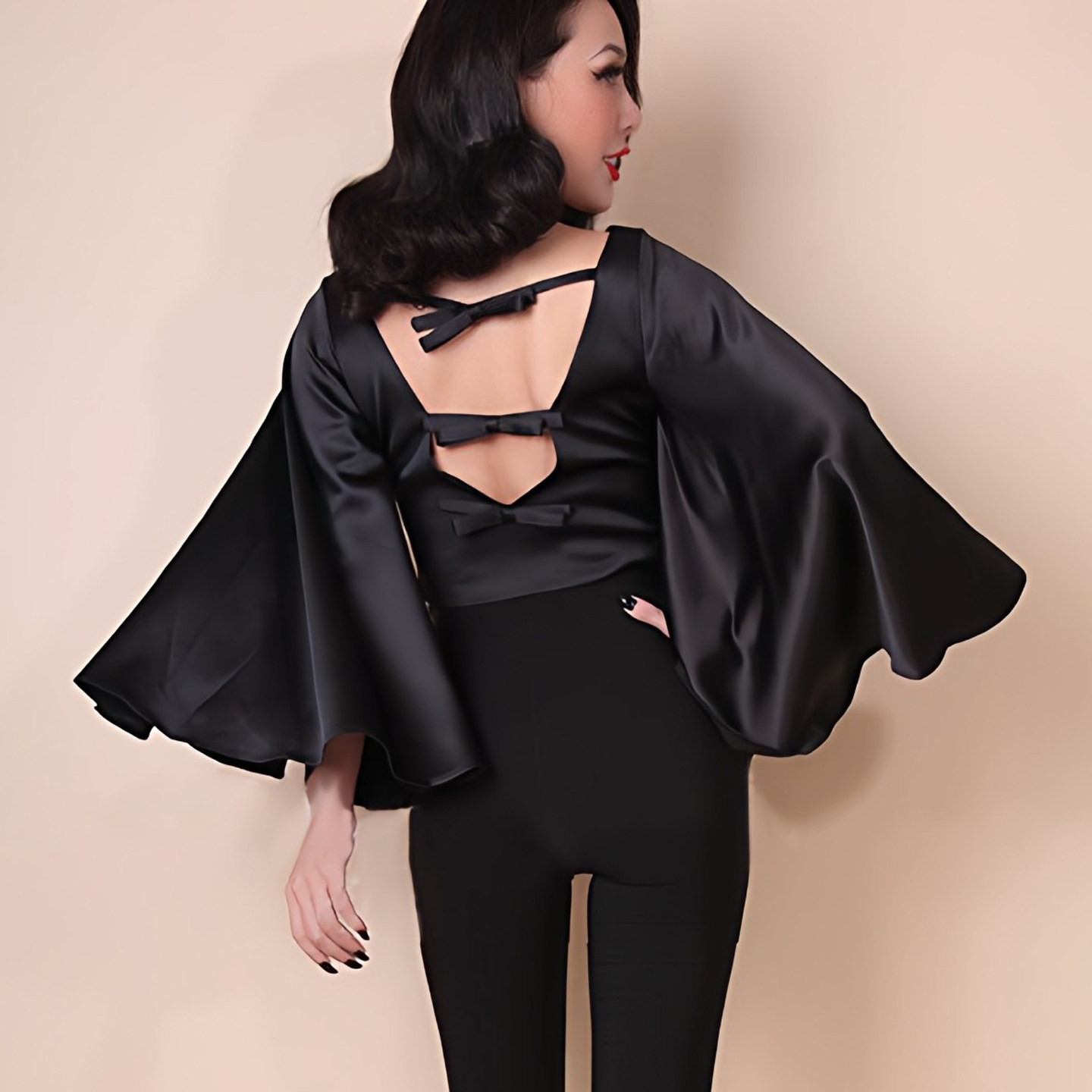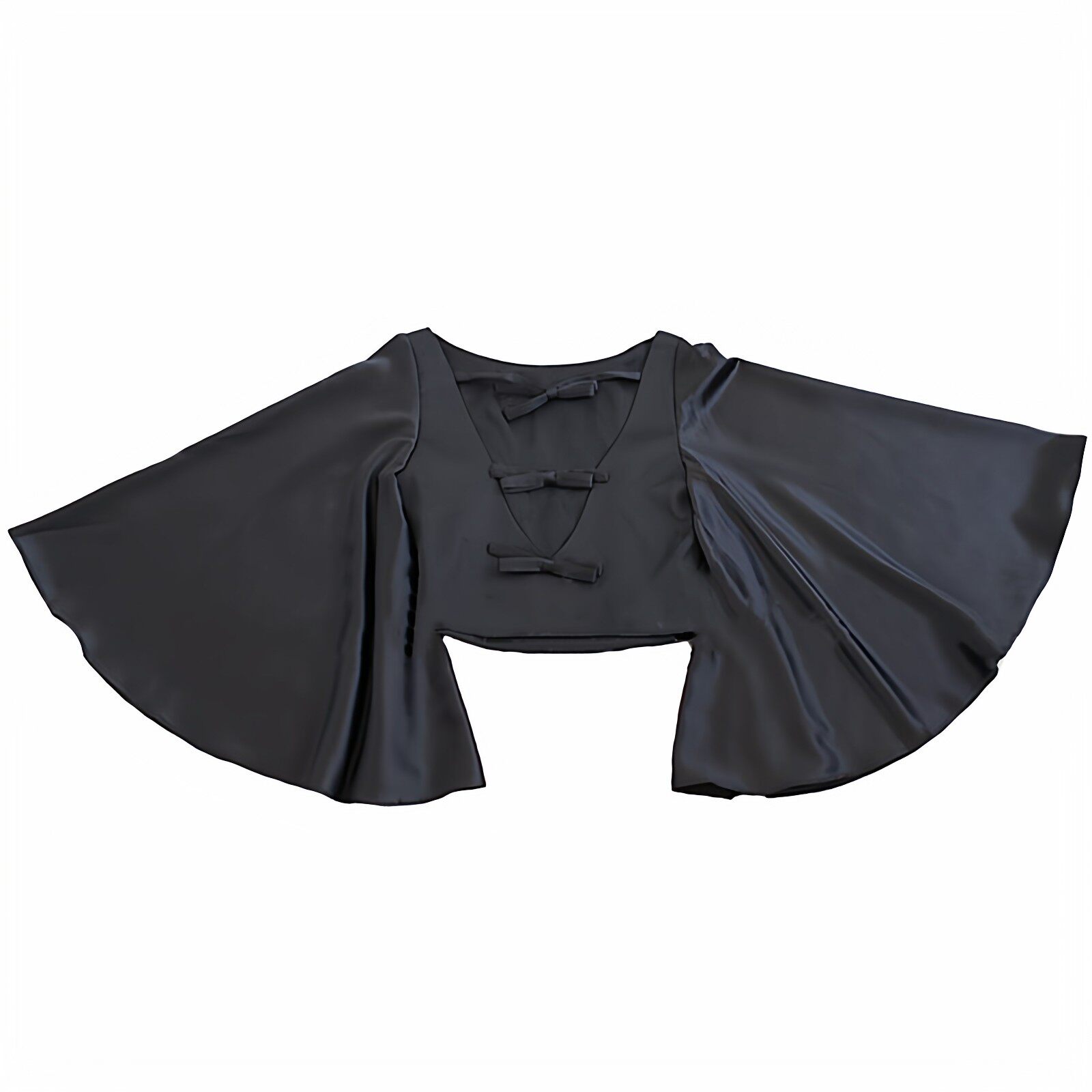 淘宝复古气质甜美设计感小众短款喇叭袖性感露脐长袖衬衫女别致上衣潮
