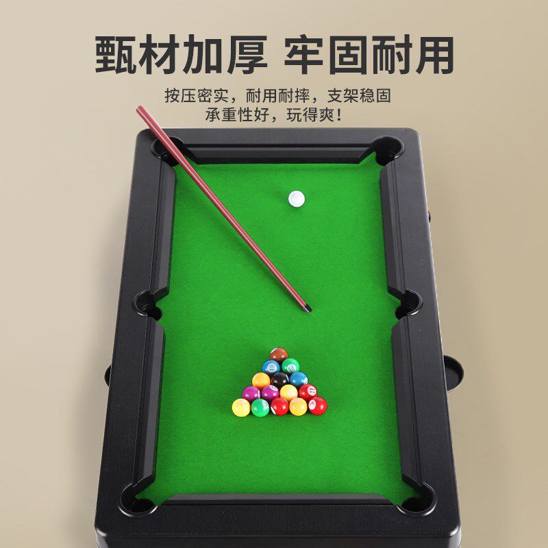 这款家用大号迷你台球桌,专为家庭娱乐设计,尺寸适中,适合摆放在客厅、儿童房或娱乐室。采用优质环保材料制作,边角圆润安全,守护孩子健康玩耍。台面平整,球体顺滑,真实还原台球体验,锻炼孩子手眼协调、逻辑思维和专注力。配备全套球杆、球和置球框,开箱即玩,增进亲子互动,是男孩及全家共享欢乐时光的理想选择。小巧不占地,收纳便捷,既是益智玩具,也是家庭温馨时光的催化剂,让快乐在家中轻松开启。
