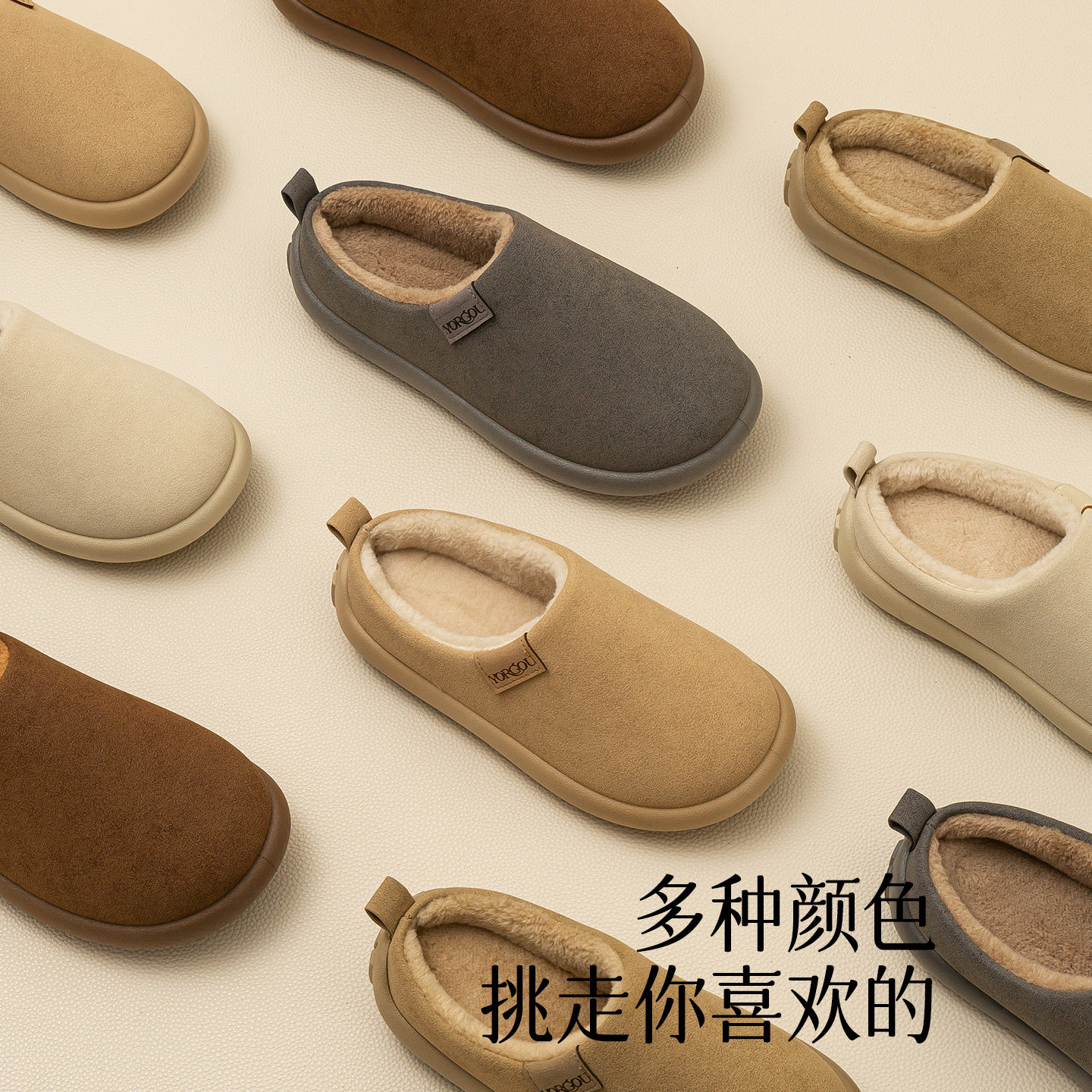 天朴西青春记忆棉鞋冬季防滑加绒包跟保暖居家棉拖鞋男女加厚外穿