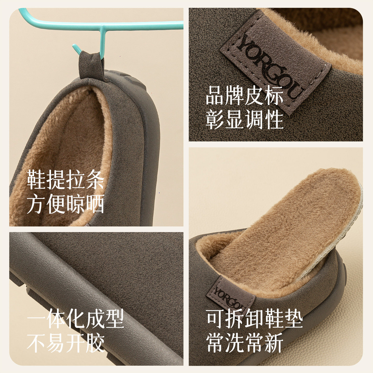 天猫远港可拆卸棉拖鞋男士秋冬季室内保暖加绒居家防滑勃肯拖鞋女冬天